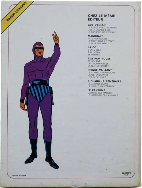 Le Fantome was published by Librairie Hachette in France in 1974. The hardcover album style comic book series contains 2 editions dedicated to the Phantom under the series name of ‘Bande Chamois’. A similar format of comic books were released by Librairie Hachette featuring a variety of comic book characters, including Mandrake the Magician, Prince Valliant, Rip Kirby and more.