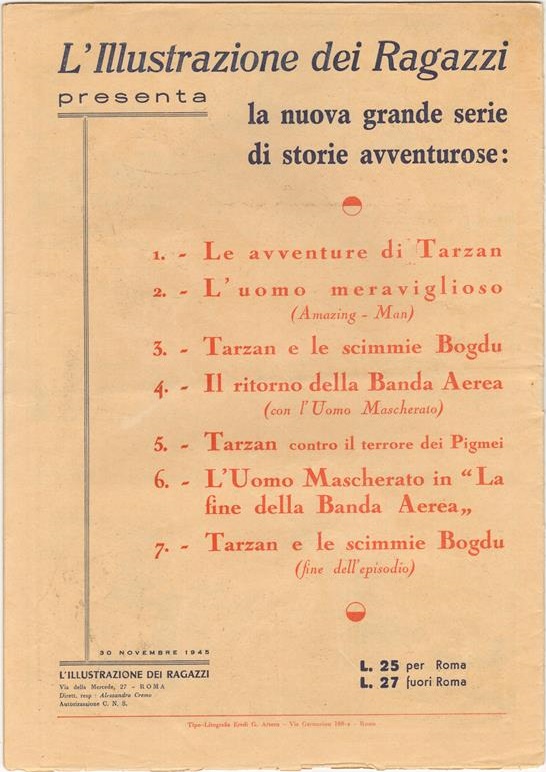 L’Illustrazione dei Ragazzi (which translates to ‘The Illustration of Children’) is a comic book series published by Società Editrice A.P.E. in Rome, Italy. The publication ran from the 26th of July, 1945 until the 16th of December 1946 with only 17 editions released.