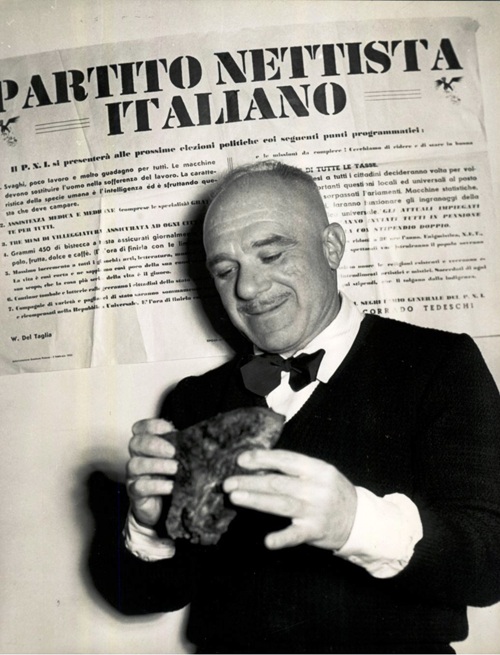 Corrado Tedeschi himself was also notable for his unique political flair. In 1953, he founded the satirical political group known as the Partito Nettista Italiano (Italian Net Party), more famously nicknamed the “Partito della Bistecca” (Steak Party). This party ran in the Italian general elections with the motto “W la pacchia!” (“Hurray for the good life!”) and a humorous platform that promised every citizen a daily portion of 450 grams of steak, free medical care, three months of guaranteed vacation, and the abolition of all taxes. Though unsuccessful in winning seats, this unusual campaign secured the founder’s place as a colorful figure in post-war Italian history and highlighted the spirit of lighthearted amusement central to his publishing brand.