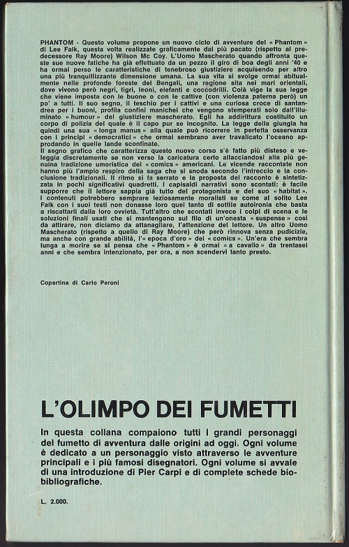 The Phantom was featured in 2 books within the series, comic book numbers 7 (published in October 1971) and 13 (published in November 1972). Measuring 20.8cm x 13.1cm, internal pages are published in black and white in Italian language. Each edition contains approximately 170 pages.