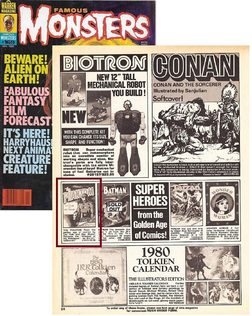 Various advertisements made an appearance in multiple fanzine magazines during that era for the Phantom comic version in the series.