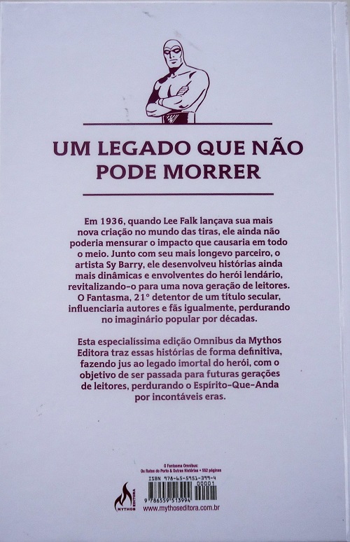 O Fantasma Omnibus is a hardcover paperback comic book containing 528 black and white pages, measuring 17cm x 26cm. Text printed is in Portuguese language. The Phantom stories found within the comic book are all written by Lee Falk and illustrated by Sy Barry.