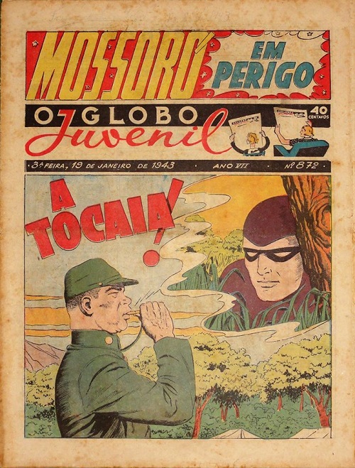 The Phantom first appears in O Globo Juvenil edition number 12, published on the 20th of July, 1937, in a newspaper format. It contains the Lee Falk and Ray Moore classic, ‘The Sky Band’. Each edition didn’t contain a full Phantom story, but broken down into several editions. Edition number 12 can be seen below.