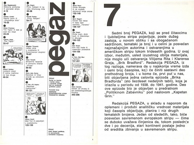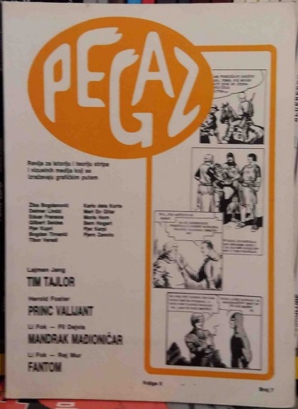 Pegaz (which translates to Pegasus) comic books were published by Forum-Marketprint in Yugoslavia from July, 1974 thru till March, 1978. 5 editions were published over this timeframe in a paperback format. The series published classic character comic strips, alongside informative articles on comic book characters, publishers, artists and writes. Comic strip characters published within Pegaz include Flash Gordon, Mandrake the Magician, Prince Valiant, plus locally created characters such as Zigomar.