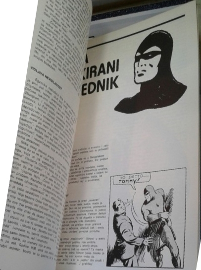 Pegaz edition number 7, the final edition in the series published in May, 1978 contains 210 black and white pages and measures 22cm x 30cm. This edition features a 2 page article by Pier Carpi titled, ‘Duh koji hoda ili maskirani pravednik’, which translates to ‘A Walking Spirit Or A Masked Righteous Man’. Below we see the front cover of this edition, plus the table of contents, with the Phantom making an appearance.
