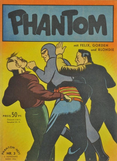 The Phantom-Heft series contained various comic book characters, including Blondie, Hopalong Cassidy, Prince Valiant, Mandrake the Magician, Rip Kirby, Felix and more. The Phantom featured heavily in the series, both on the cover and within each comic book.