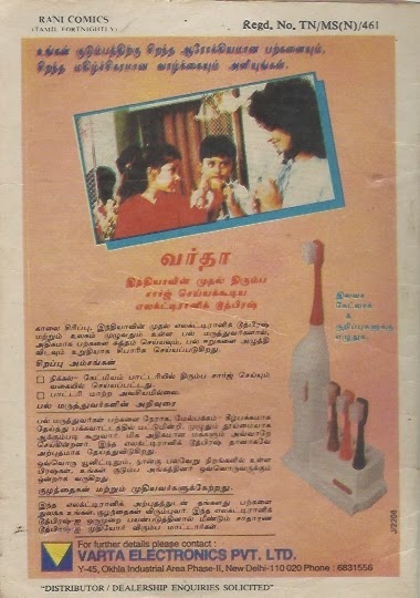 Rani Comics was published in Tamil language, competing with Lion Comics and Mehta Comics within Tamil language circles of the time. Rani Comics was well placed and ahead of it’s competitors, mainly due to Rani Comics solid distribution, drawing upon Dina Thanthi distribution network and also the fact that Rani Comics price point was much lower then it’s competitors.