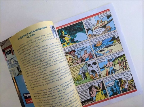 Published in 2019, a 5 comic book series was released containing full color pages in Malayalam language. Page length varied for each comic book, ranging from 24 pages up to 40 pages and measure 21cm x 29cm.