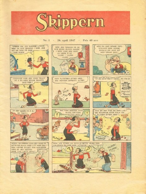 Skippern (which translates to ‘The Skipper’) was printed in Norway by Allers on a weekly basis, commencing on the 26th of April 1947 until the 6th of June, 1959. A total of 452 editions were published. The front and back cover of the first edition can be seen below.