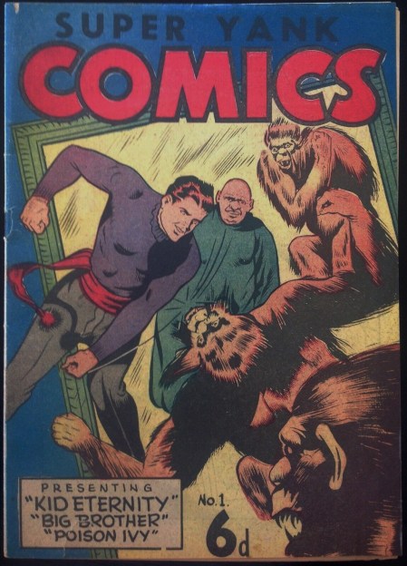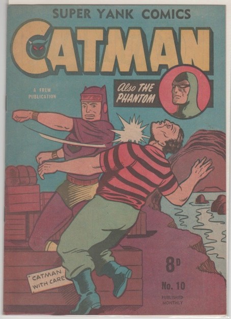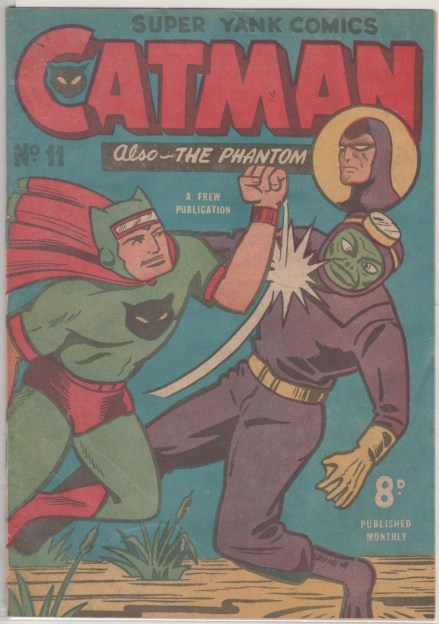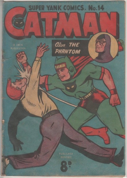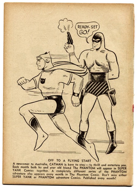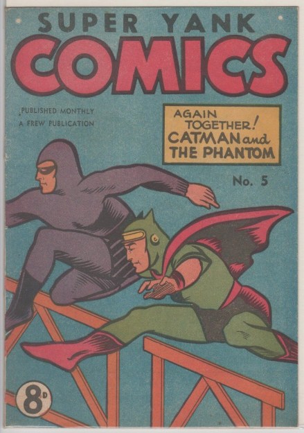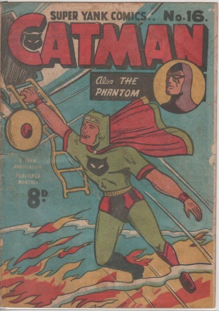 Although the “Super Yank Comics” name on the cover appeared on all editions, the main cover title changed 3 times over it’s short run, numbers 1 to 9 “COMICS”, numbers 10 to 17 “CATMAN”, and finally numbers 18 and 19 “SUPER YANK”.
