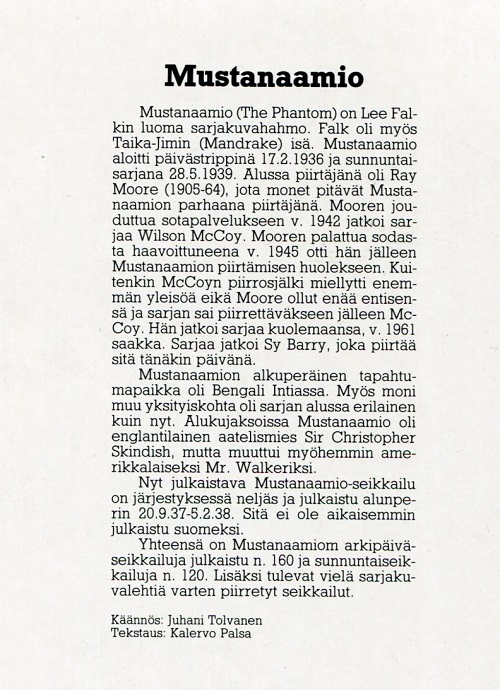 The front and back cover of Suuri Sarjakuvakirja edition number 1 featuring the Phantom can be seen below.