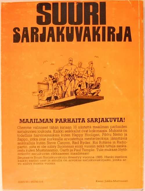 Suuri Sarjakuvakirja (which translates to ‘Big Comic Book’) is a series published by Kustannus Oy Jalava in Finland between 1984 thru till 1986. The series contains 3 softcover comic books, publishing classic comic strips for a variety of comic book heroes. Suuri Sarjakuvakirja also contain some brief details about the authors of each comic strip.