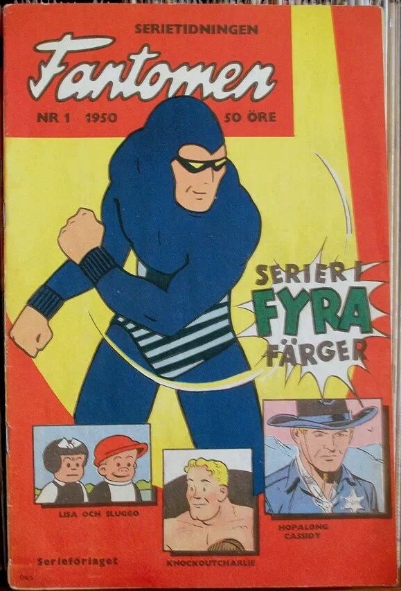 In October 1950, Serieförlaget commenced printing a regular series of Fantomen comic books which is still in publication today, with over 1600 comics printed to date.