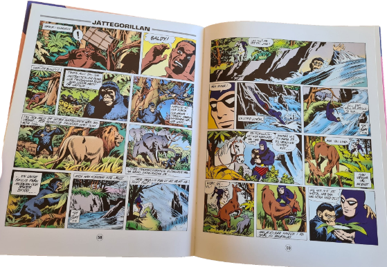 The Fantomen Sy Barry Söndagsäventyr (translating to Sunday Adventure) is a series published by Egmont Serieförlaget in Sweden from 2001 thru till 2003. 3 hardcover books were published over this period, containing Sunday stories written by Lee Falk and illustrated by Sy Barry, appearing in newspapers between 1962 thru till 1968.