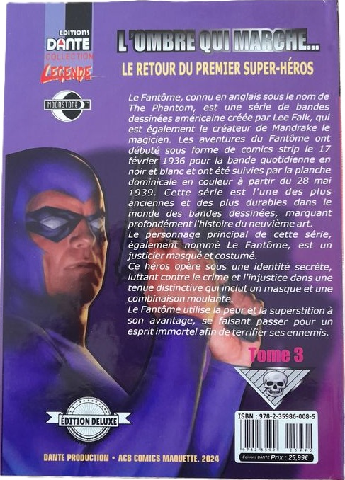 The Phantom – L’Ombre Qui Marche (which translates to The Phantom – The Ghost Who Walks) is a comic book series published by Editions Dante in France commencing in 2009. The series contains three comic books focusing on reprinting modern stories originally published by the American company Moonstone Books.