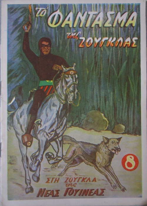 The Phantom was featured in three editions in the To Fantasma tis zouglas series, containing approximately 16 black and white pages measuring 17.5cm x 25cm with Greek text. Edition numbers 8, 9 and 10 which feature the Phantom on the front cover and within can be seen below.