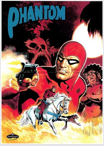 Several of the Phantom comic books contain a Phantom themed poster attached to the center of the comic. These editions are numbers 1, 2, 3, 5 and 6. The 5 posters are printed in color with a gloss finish. They can be seen below, in order of release from left to right.