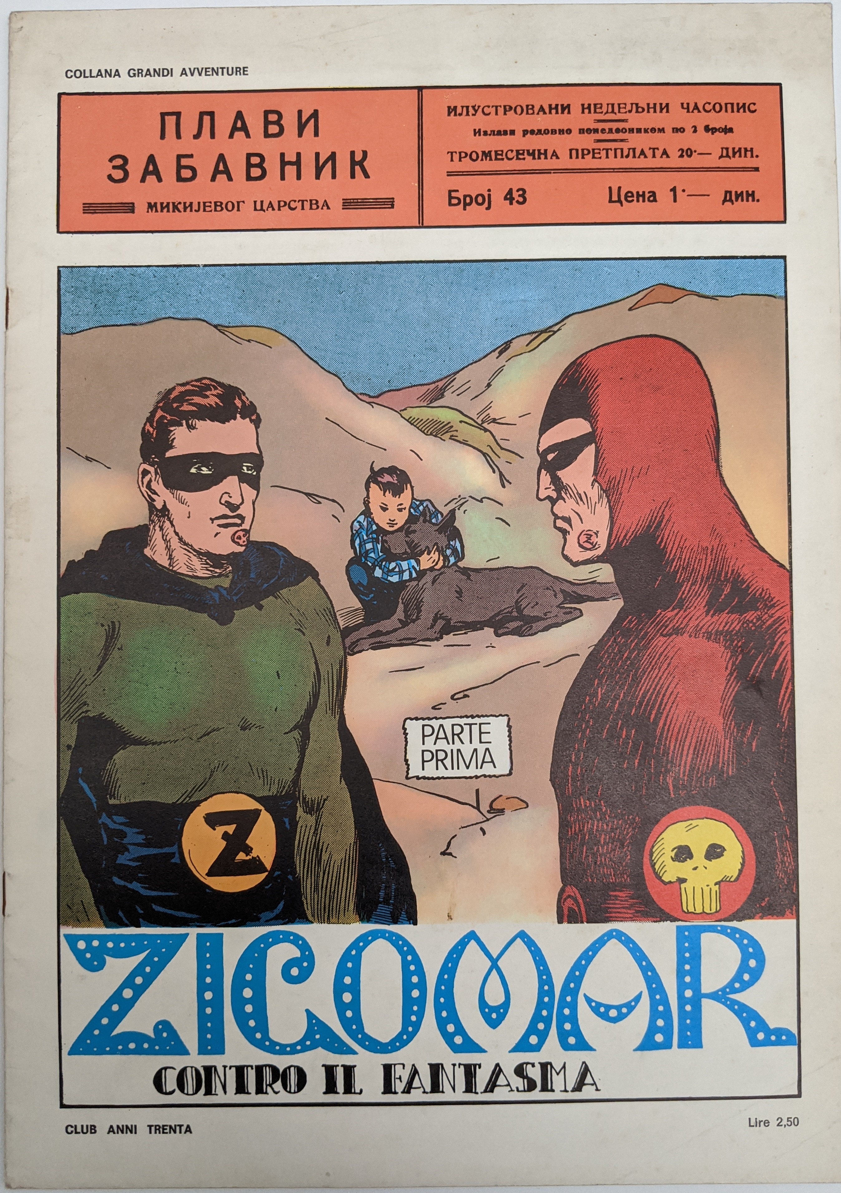 Zigomar first appeared in Mikijevo Carstvo (which translates to ‘Mickey’s Empire’), number 28, in Yugoslavia, published on the 28th of May, 1939.