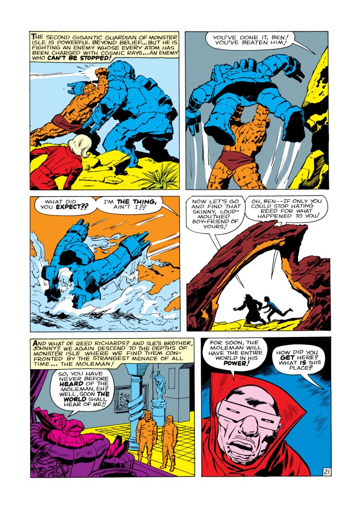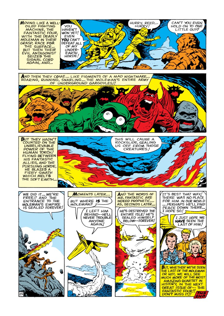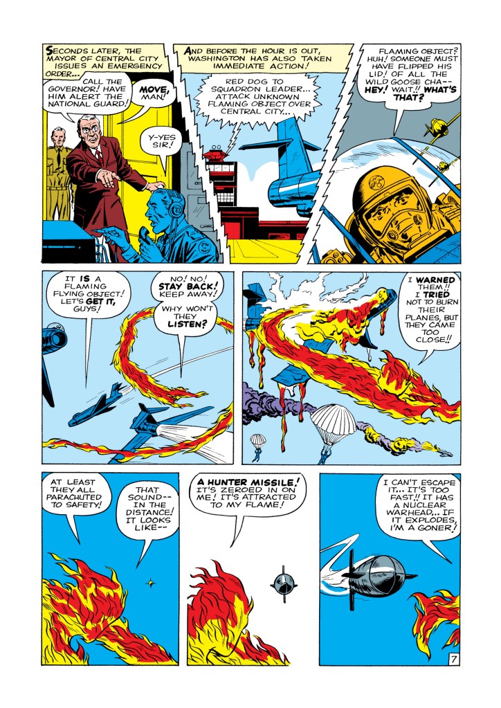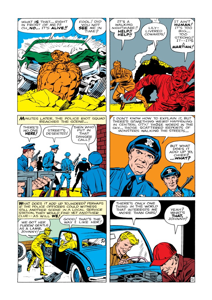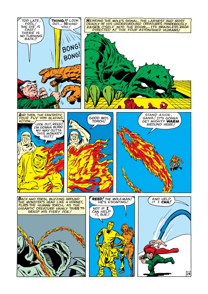 The four individuals traditionally associated with the Fantastic Four, who gained superpowers after exposure to cosmic rays during a scientific mission to outer space, are Mister Fantastic (Reed Richards), a scientific genius and the leader of the group, who can stretch his body into incredible lengths and shapes; the Invisible Girl (Susan “Sue” Storm; later “Invisible Woman”), who eventually married Reed, who can render herself invisible and later project powerful invisible force fields; the Human Torch (Johnny Storm), Sue’s younger brother, who can generate flames, surround himself with them and fly; and the monstrous Thing (Ben Grimm), their grumpy but benevolent friend, a former college football star and Reed’s college roommate as well as a good pilot, who possesses tremendous superhuman strength, durability, and endurance due to the nature of his stone-like flesh.