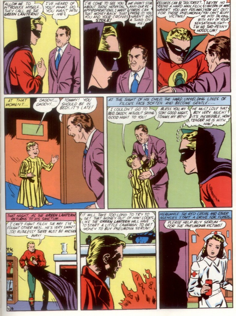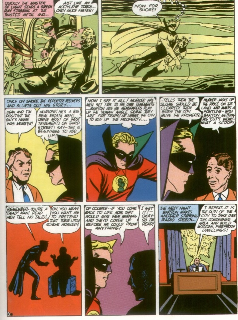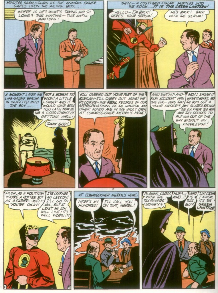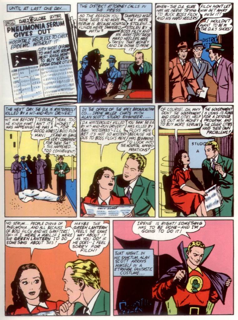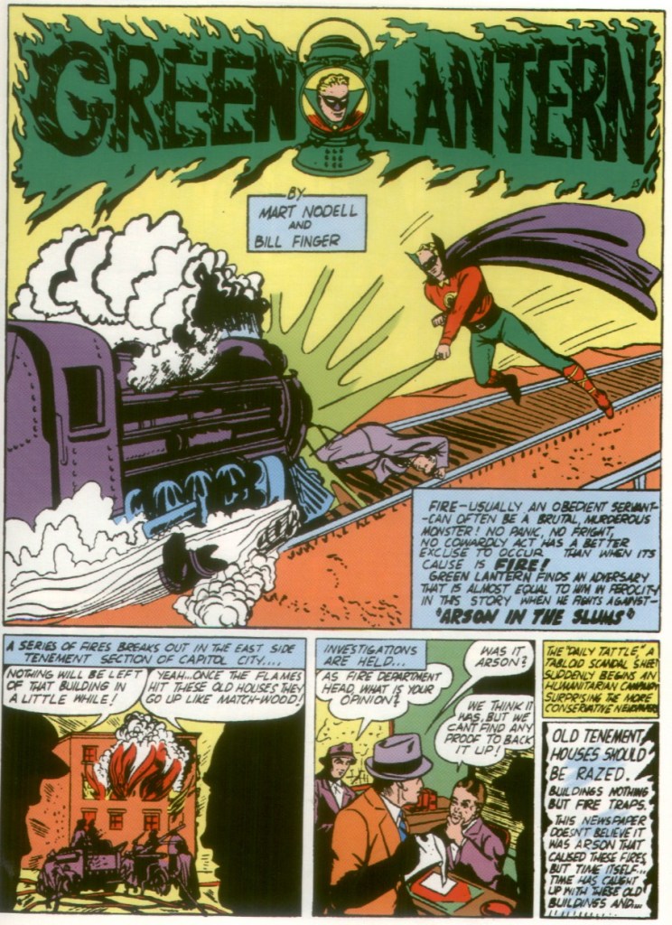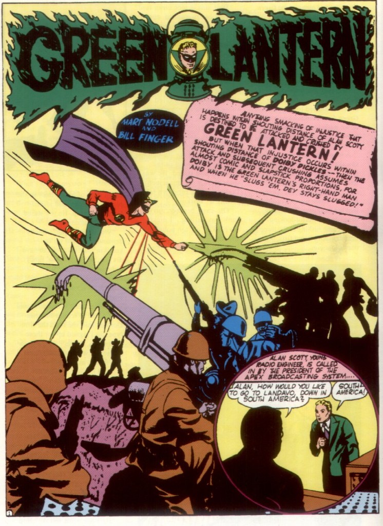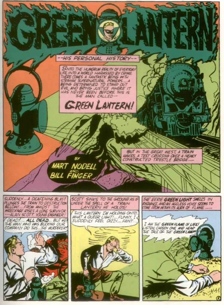 The first Green Lantern character, Alan Scott, was created in 1940 by Martin Nodell during the Golden Age of Comic Books and usually fought common criminals in Capitol City (and later, Gotham City) with the aid of his magic ring. For the Silver Age of Comic Books, John Broome and Gil Kane reinvented the character as Hal Jordan in 1959 and shifted the focus of Green Lantern stories from fantasy to science fiction.