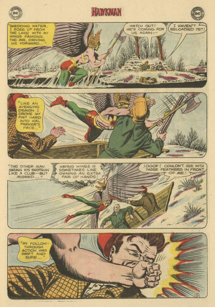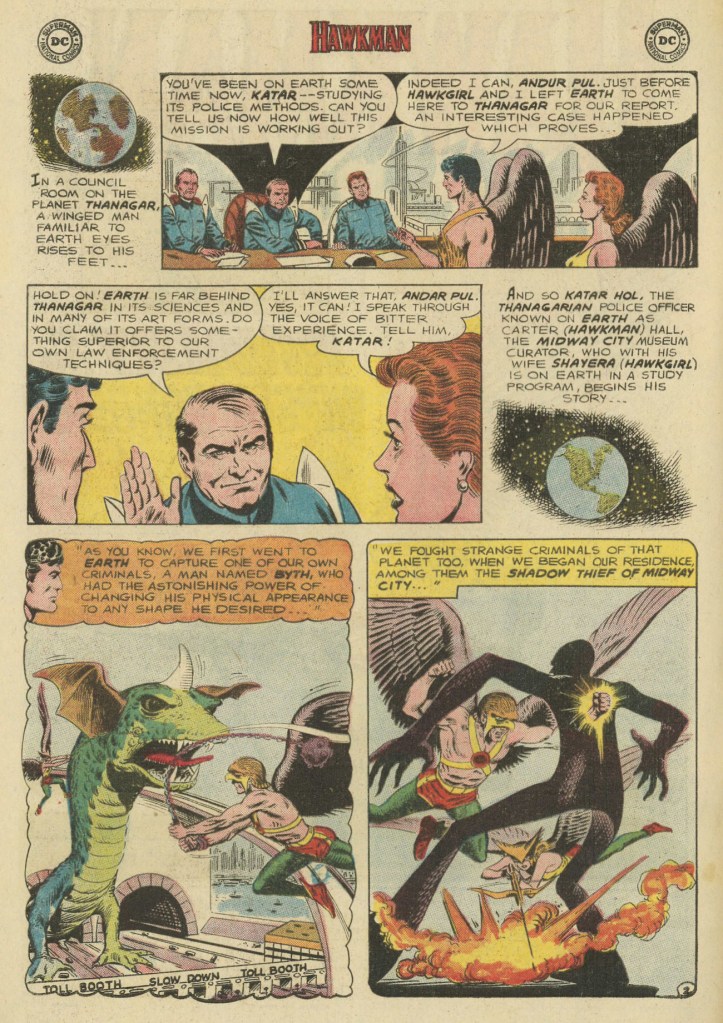 Using the properties of “Nth metal” to craft a gravity-defying belt, Hall creates wings and a costume, ultimately confronting Hastor as Hawkman after Anton captured Shiera with a spell that drew her to his lair. He also encounters and remembers Shiera during this time. Following Hastor’s defeat, the two begin a romance.