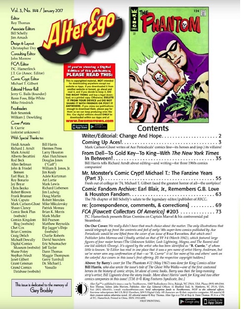 The Alter Ego Magazine Series was originally founded in the USA as a Fanzine by Jerry Bails in 1961, and later taken over by Roy Thomas when it became an official magazine published by TwoMorrows Publishing. The Fawcett Collectors of America Fanzine is published as part of Alter Ego.