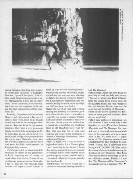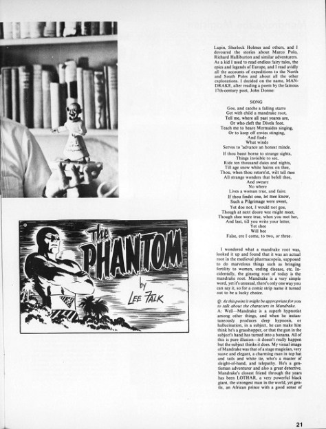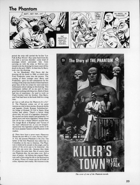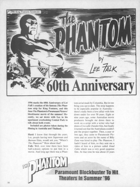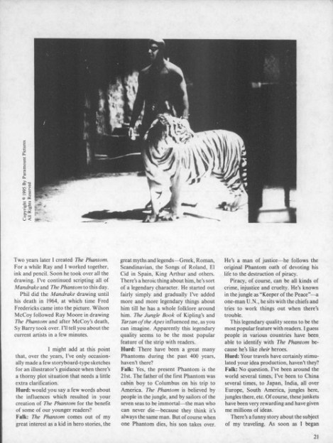 Phantom related articles, notations and advertisement appeared sporadically over the 146 editions, with several editions containing in-depth articles. The Phantom also appears on some Cartoonist PROfiles magazine covers.