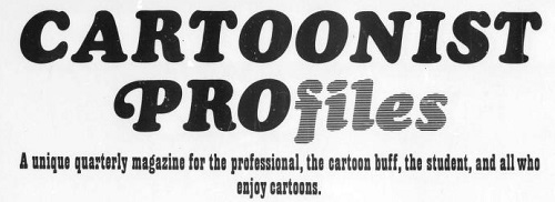 Cartoonist PROfiles is a magazine series which was created by Jud Hurd in USA in March, 1969. The publication featured all aspects of the comic/cartoon industry including publishing houses, writers, artists, syndication license holders, events, interviews and so much more.