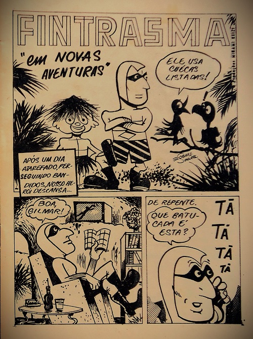The Phantom is also featured as a parody in this edition under the title of ‘Fintrasma Em Novas Aventuras’, which translates to ‘Fintrasma In New Adventures’, illustrated by Edgard Soares. A sample of the Phantom parody comic strip can be seen below.
