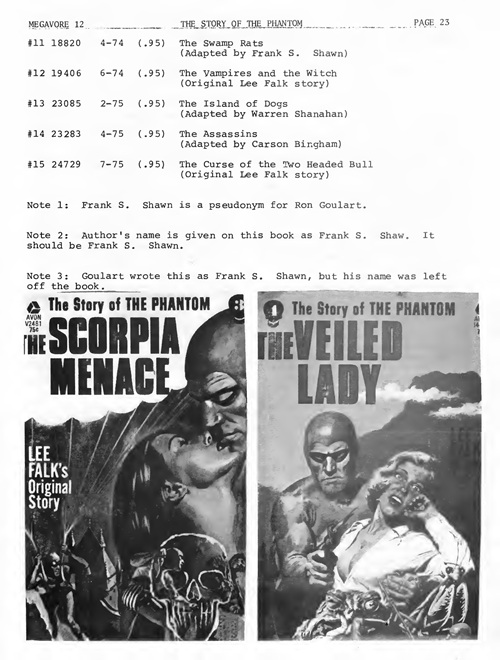 The fanzine also delved into specific characters and authors, with Nick Carr contributing an article on Dusty Ayres and his Battle Aces in issue #10. Subsequent issues continued this tradition, with Megavore #12 featuring bibliographies on James H. Schmitz and John Varley, alongside ‘The Story of The Phantom’. Issue #13 provided further scholarly material, including an article on ‘The Top Ten Spider Novels’ by a syndicate of writers including Will Murray and Bob Sampson, a bibliography of Jack Williamson by Uwe Luserke, and an exploration of Arthur Conan Doyle’s Professor George Edward Challenger by Dana Martin Batory.