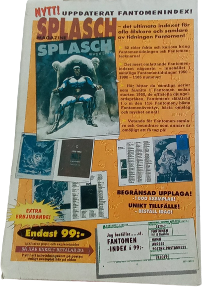 We find an advertisement in Fantomen edition number 1, published in 1998 for Splasch Magazine number 6, with the reader able to return a coupon with payment to be mailed a copy.