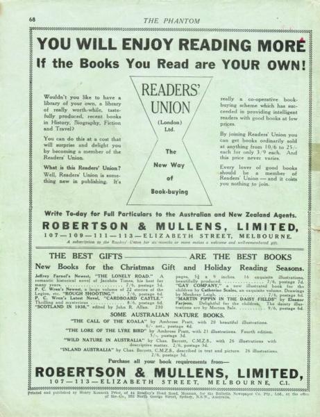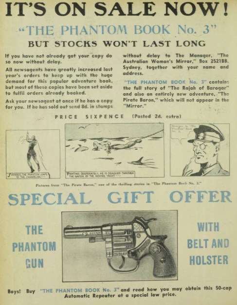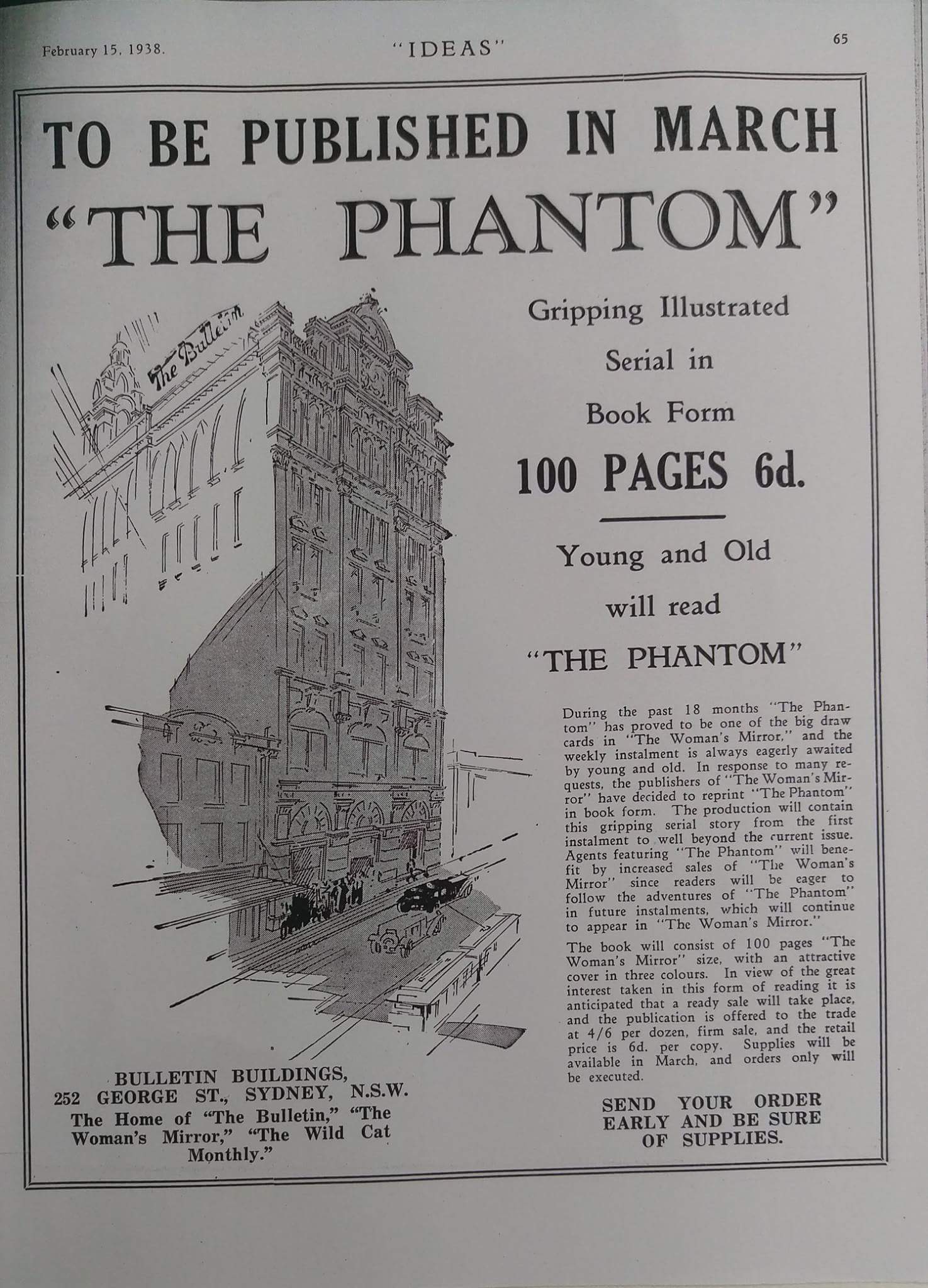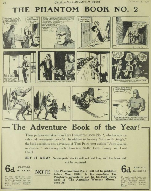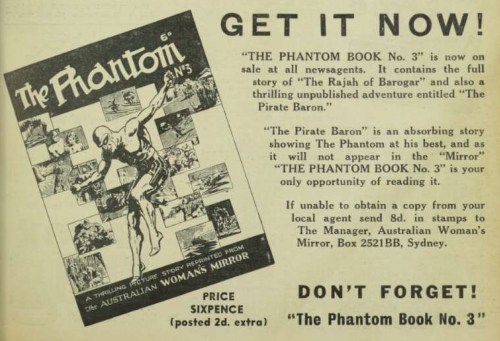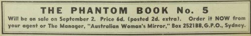 Various other advertisements were seen in The Australian Woman’s Mirror, mainly updating their reading audience on the progress of the release of the Phantom books.