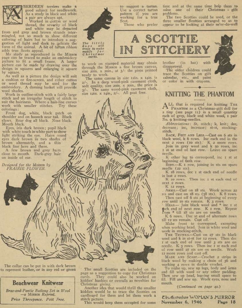 The Australian Woman’s Mirror, 6th of November, 1946 edition contained instruction on knitting a Phantom doll.