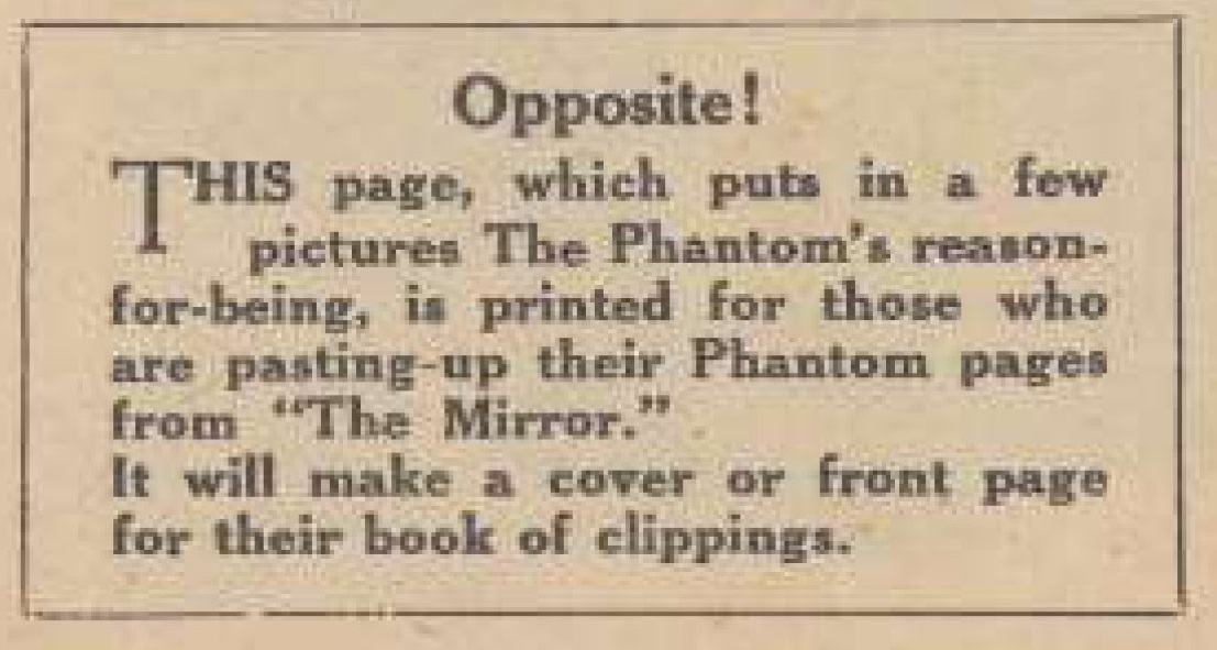 In July 1946, The Australian Woman’s Mirror printed a cover page for those compiling Phantom comic strips into a ‘book of clippings’.