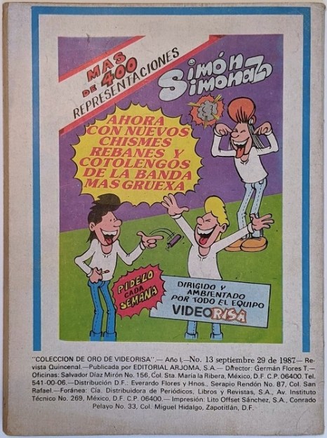 Published in September 1987, containing 64 pages in full color. The Magazine was published every fortnight bearing the title ‘Coleccion de Oro Videorisa. This series was banned in the schools in Mexico due to its explicit content!!