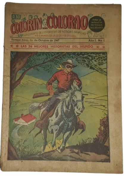 Colorin Colorao was published by The Nation as a supplement with the Noticias Gráficas newspaper in Buenos Aires, Argentina commencing in October, 1947. Published on a weekly basis, the tabloid style supplement contained a number of comic strip characters within each edition, with a different character found on each page, with the story continuing on from edition to edition.