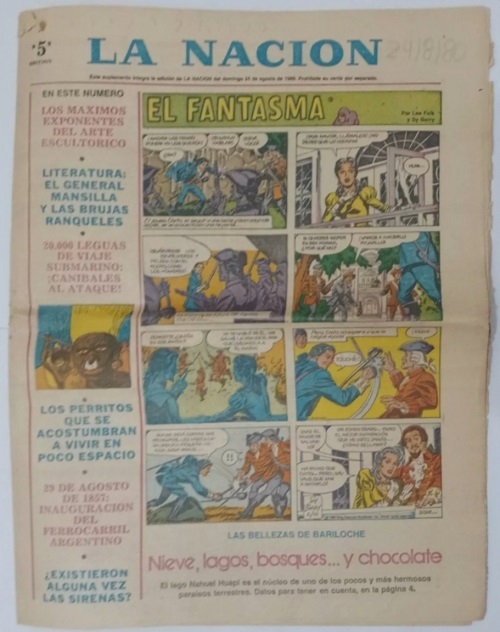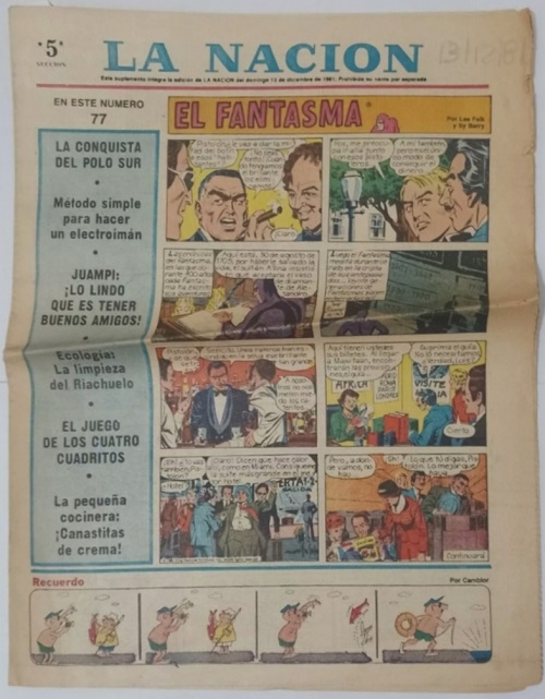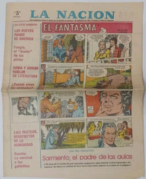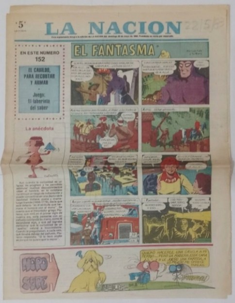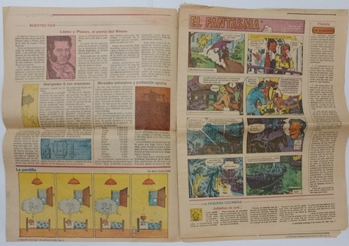 La Nación contained a lift-out section published once a week (on weekends) for it’s younger audience, labeled ‘Section 5’, containing comic strips, general interest articles, short stories and puzzles. Pages within this section varied from 4 to 16 pages. Printed in Spanish in full color, Section 5 was the same size as the rest of the newspaper, measuring 11.5″ x 15″.