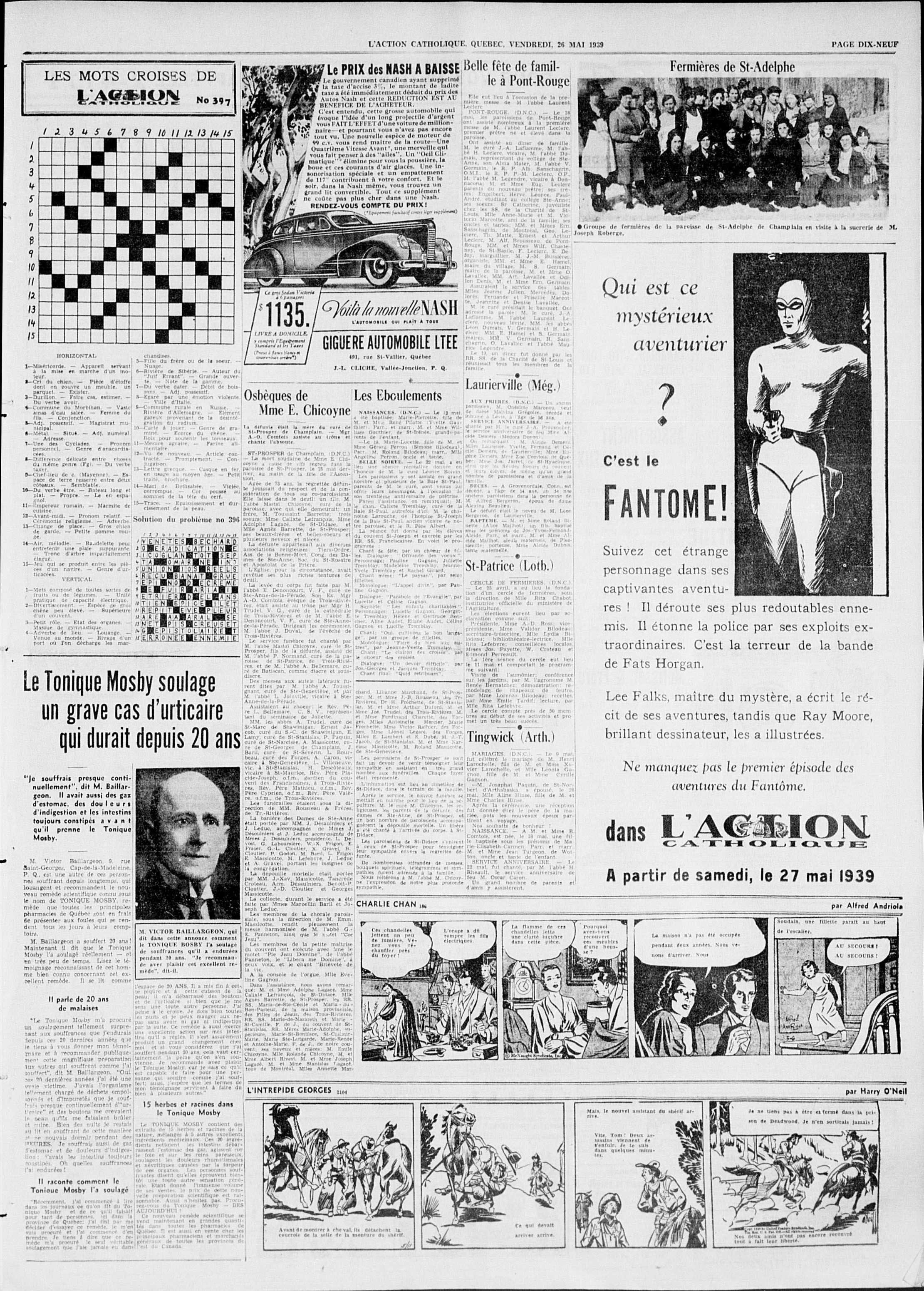 Leading up to the first appearance of the Phantom on the 30th of May 1939, 3 advertisement were printed by L’Action Catholique.