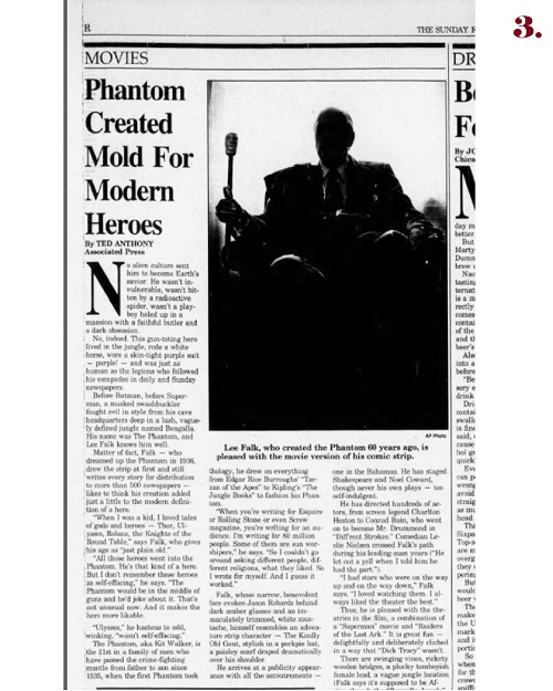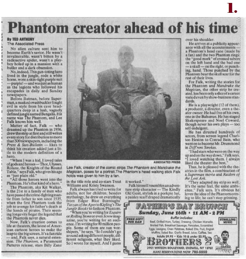 Below we see a few articles which feature Lee Falk, appearing in either newspapers or in magazines. The articles are split into 3 parts.