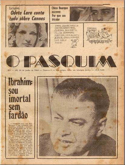 The newspaper brought together a new generation of artists very critical of the political situation of Brazil, including Millôr Fernandes, Ziraldo, Jaguar, Martha Alencar, Sérgio Noronha, Moacir Scliar, Newton Carlos, Chico Buarque, Caetano Veloso, Ferreira Gullar, Glauber Rocha e Cacá Diegues. Its colloquial style profoundly transformed the language of Brazilian journalism. Publicity occupied 25% of the pages of the newspaper, which was purchased first and foremost by the sons and daughters of the Brazilian middle class. Many of its most interesting reports and political cartoons were censored by the military dictatorship, whose police invaded the Pasquim’s headquarters in November of 1970, arresting almost all of its journalists. The newspaper then became a symbol of resistance of civil society before the authoritarianism of the state. Although O Pasquim closed its operations in 1991, it is still considered the alternative newspaper of most longevity in Brazil.