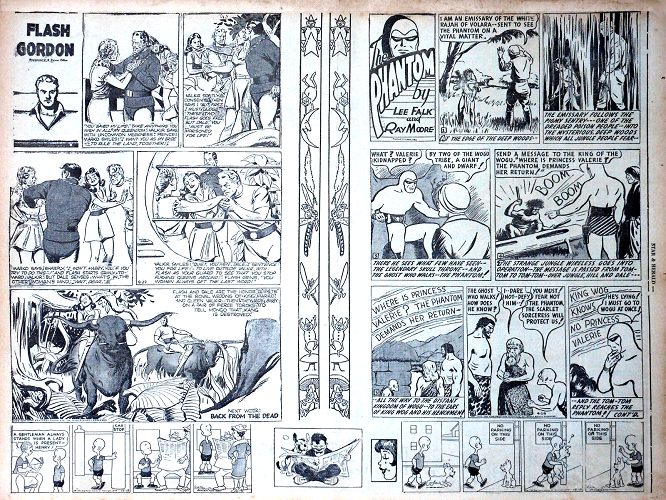 Below we see the Lee Falk and Ray Moore Sunday classic Phantom story ‘The Scarlet Sorceress’, appearing in US newspapers in 1946. The page below was published in the Star & Herald Newspaper on the 29th of September 1946.