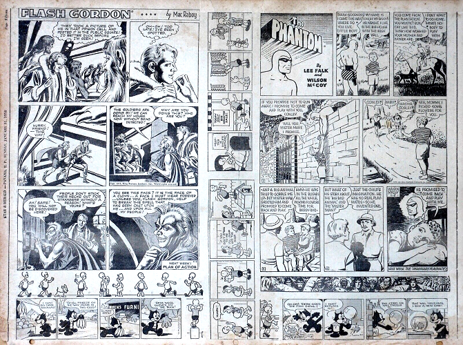 Below we see the Lee Falk and Wilson McCoy Sunday classic Phantom story ‘The Imaginary Playmate’, appearing in US newspapers in 1953-1954. The pages below were published in the Star & Herald Newspaper on the 31st of January 1954 (on the left) and on the 7th of March 1954 (on the right).