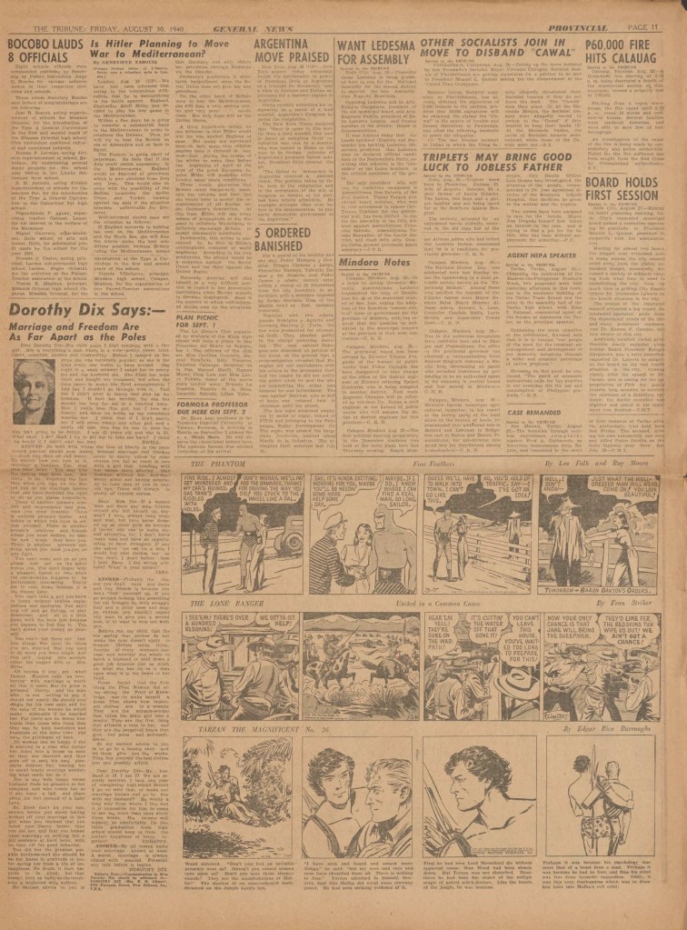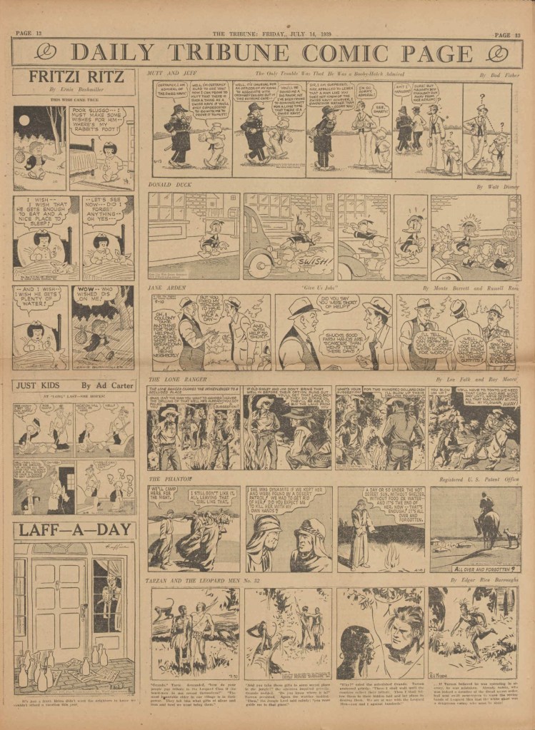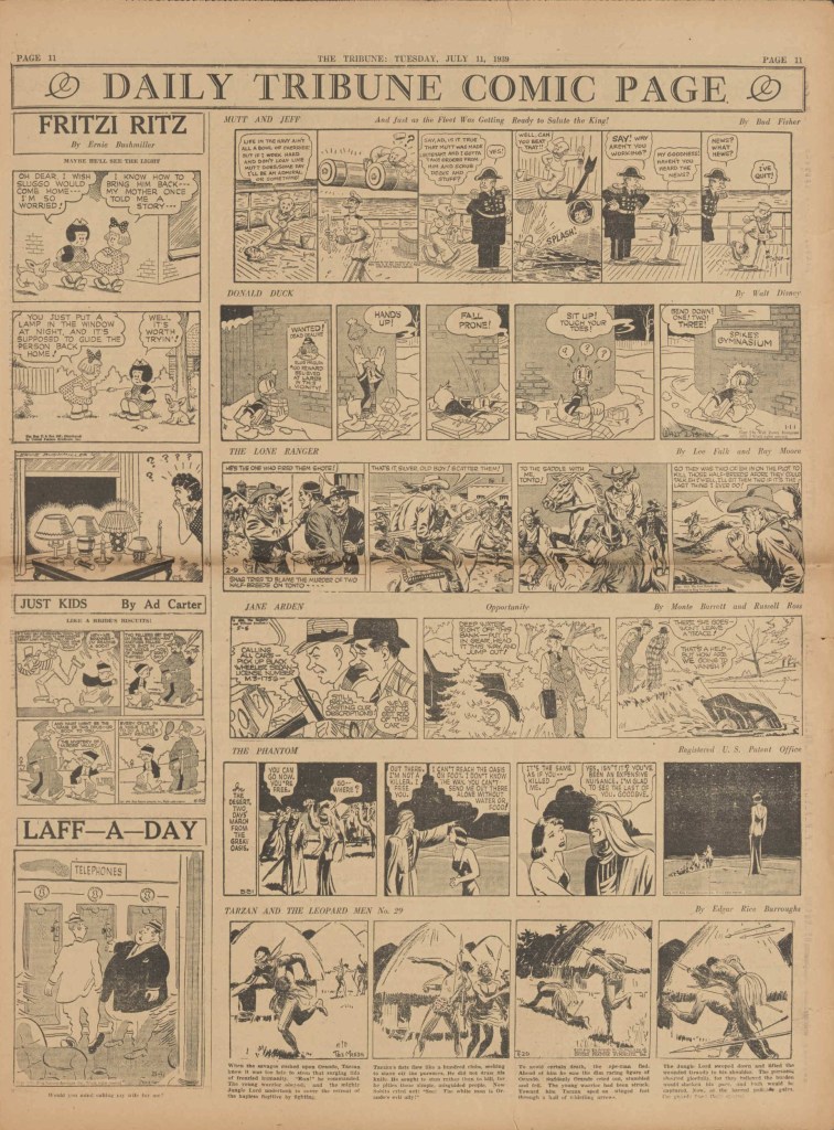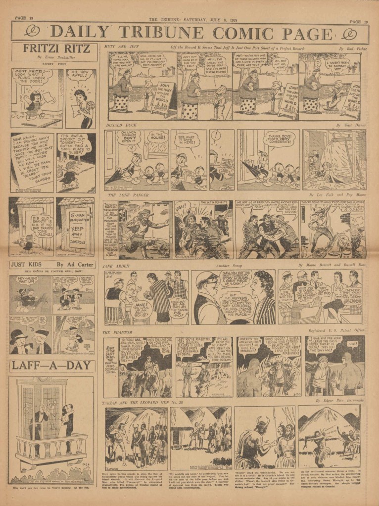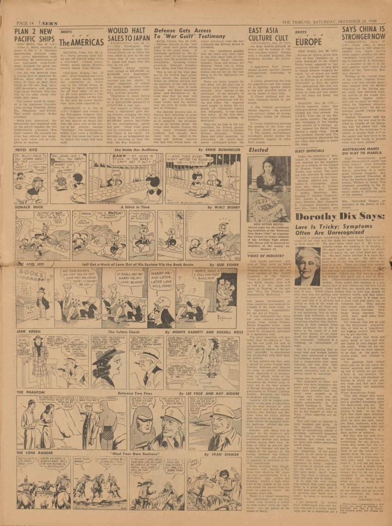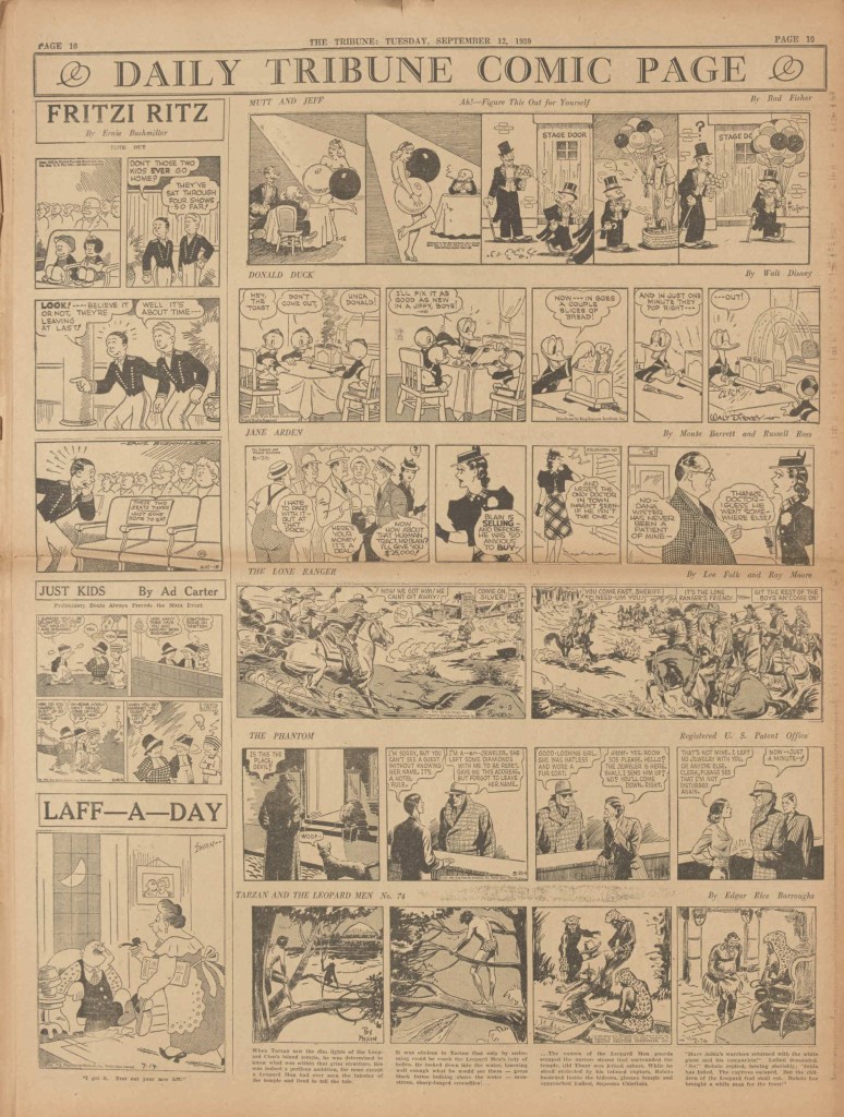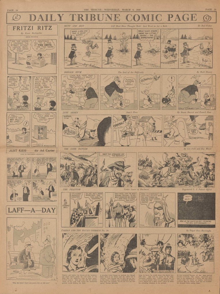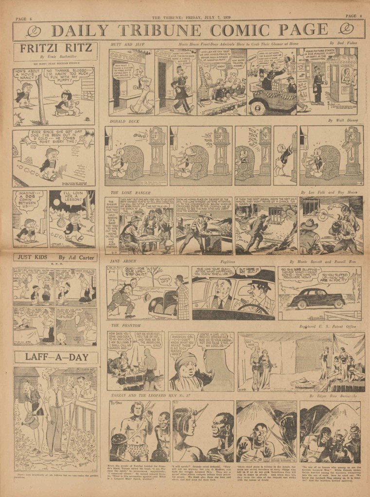 On the weekend, a special comic lift-out was published in full color, running for 16 pages and containing comic characters such as Tarzan, The Lone Ranger, The Captain and The Kids, Henry, Prince Valiant and more. See below an example of the weekend lift-out.