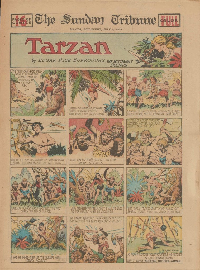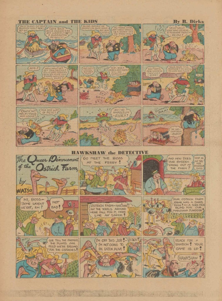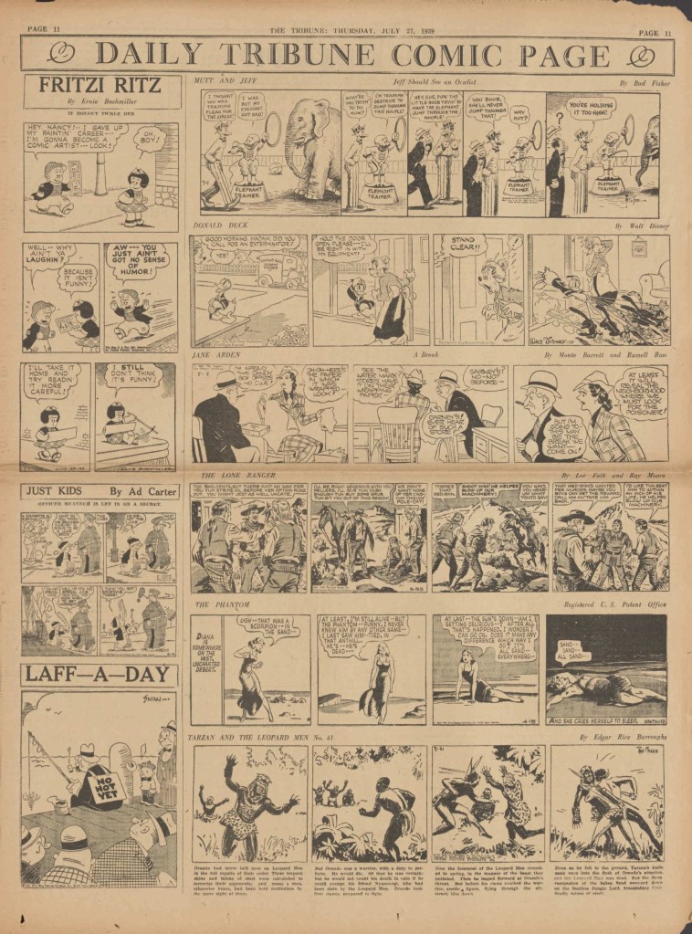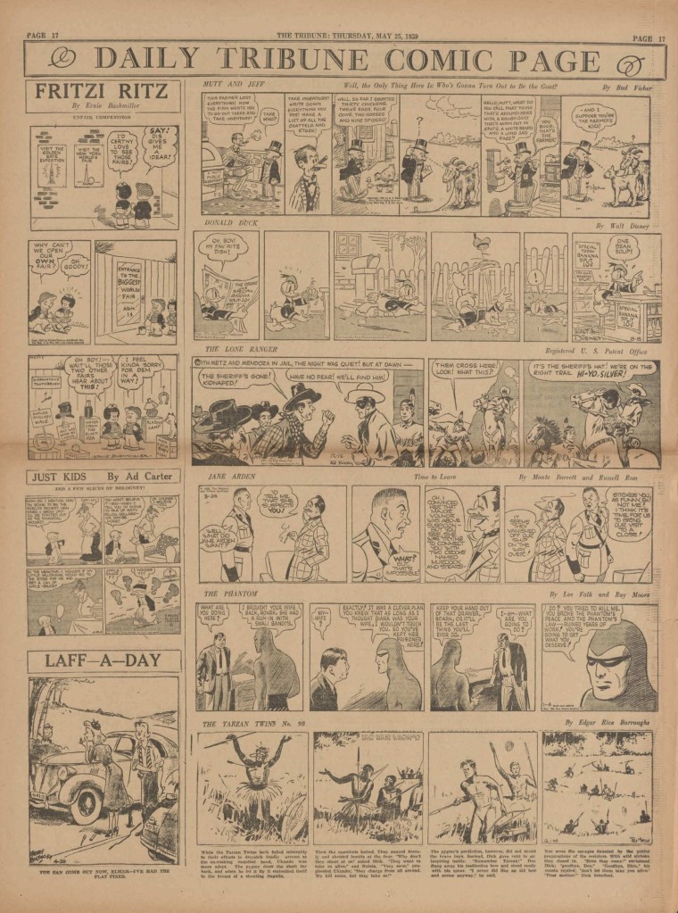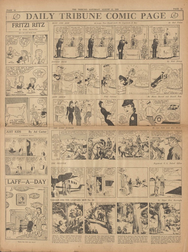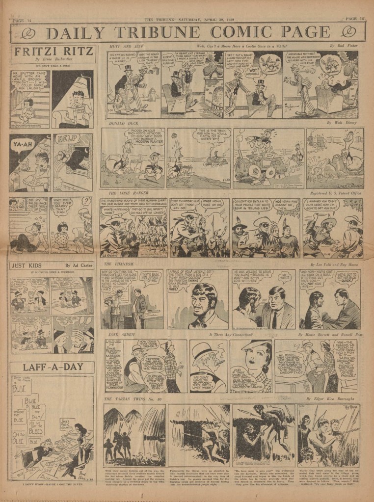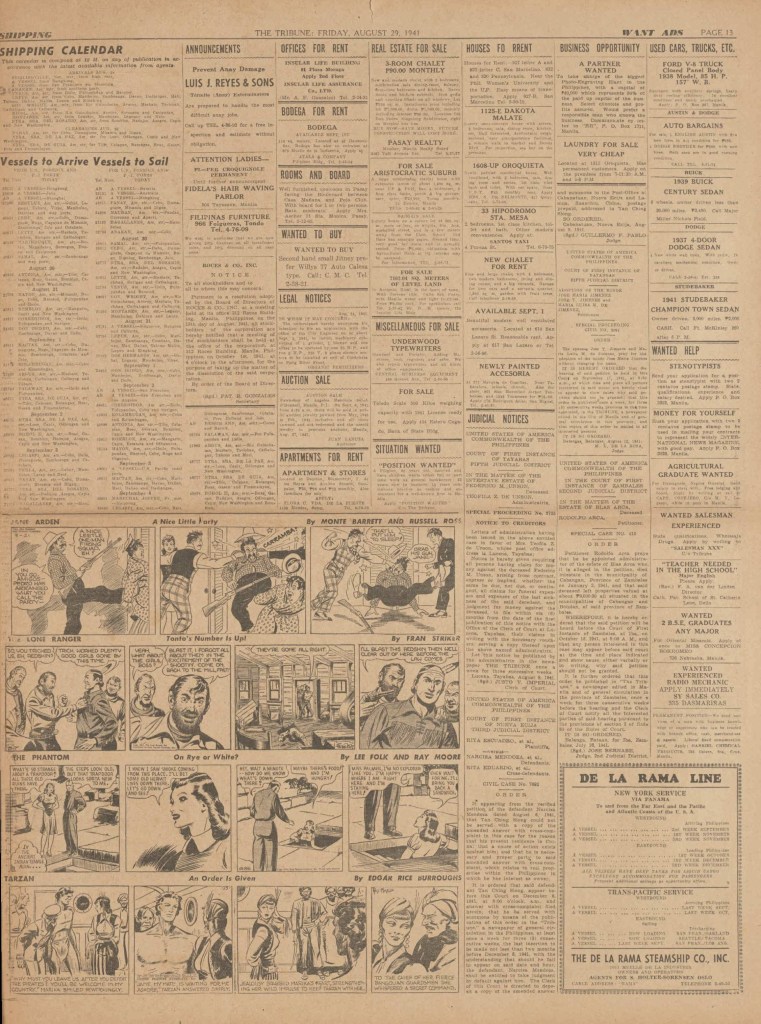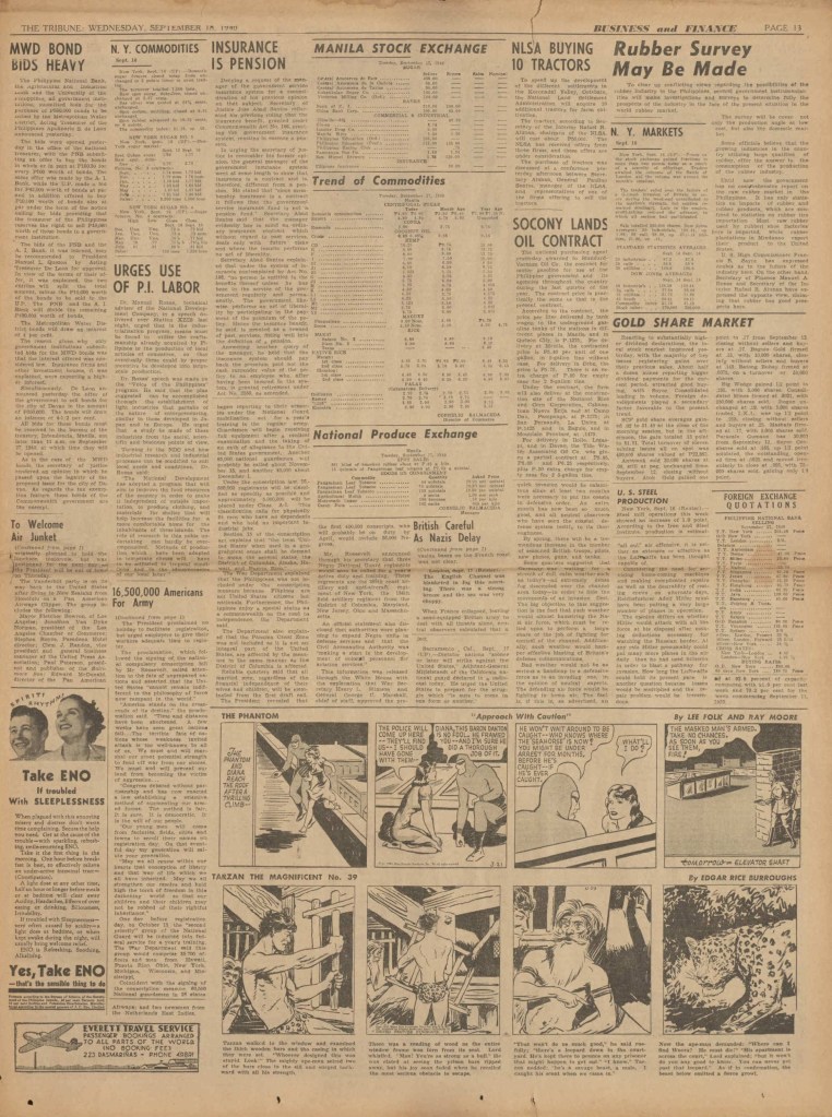On the weekend, a special comic lift-out was published in full color, running for 16 pages and containing comic characters such as Tarzan, The Lone Ranger, The Captain and The Kids, Henry, Prince Valiant and more. See below an example of the weekend lift-out.