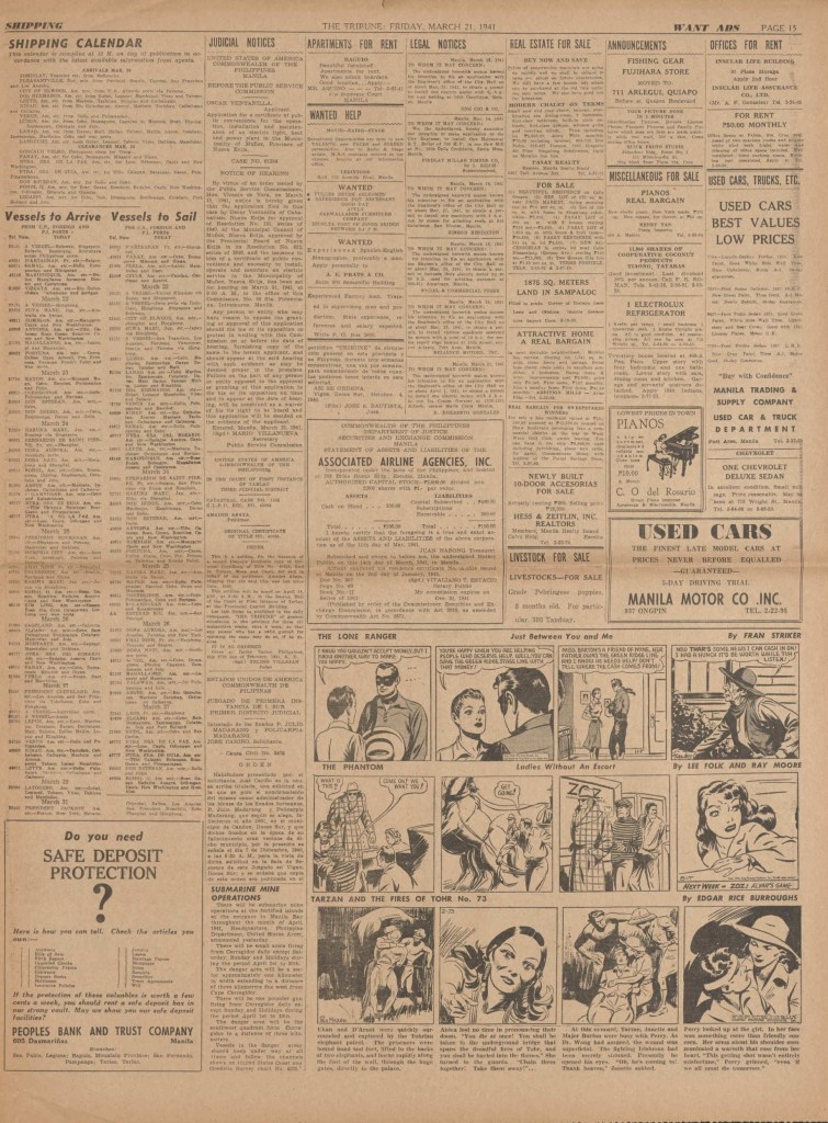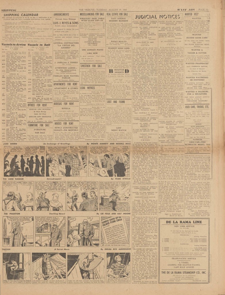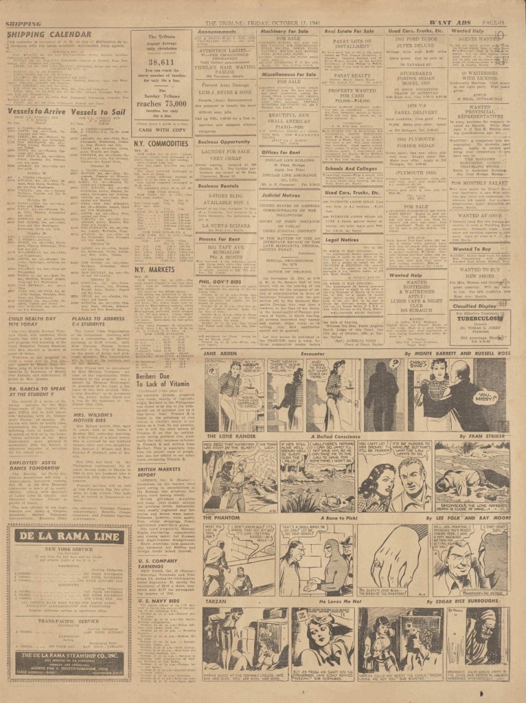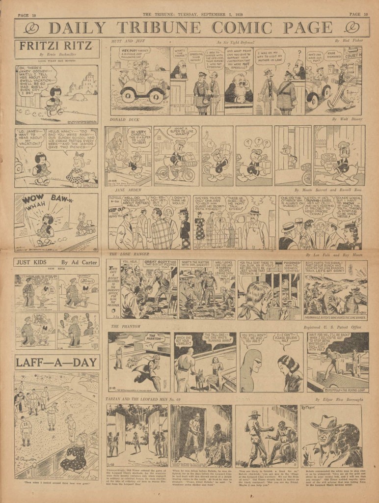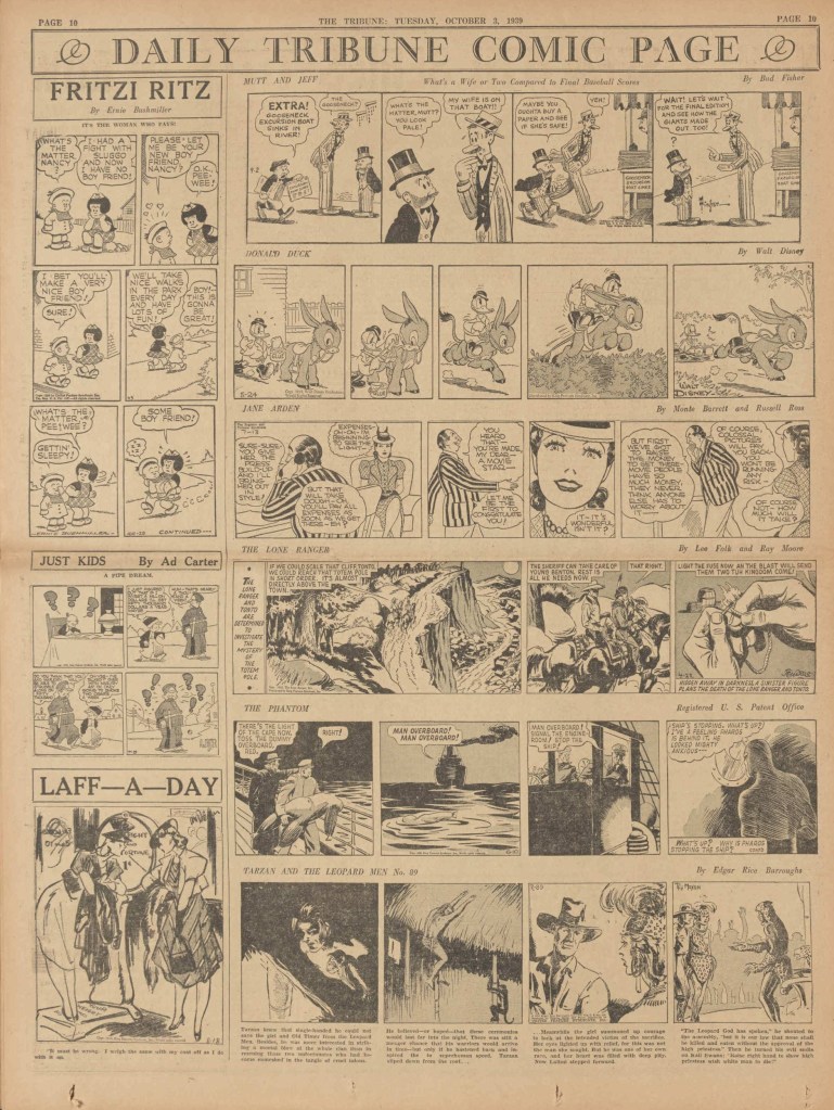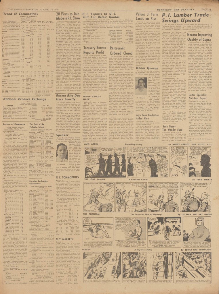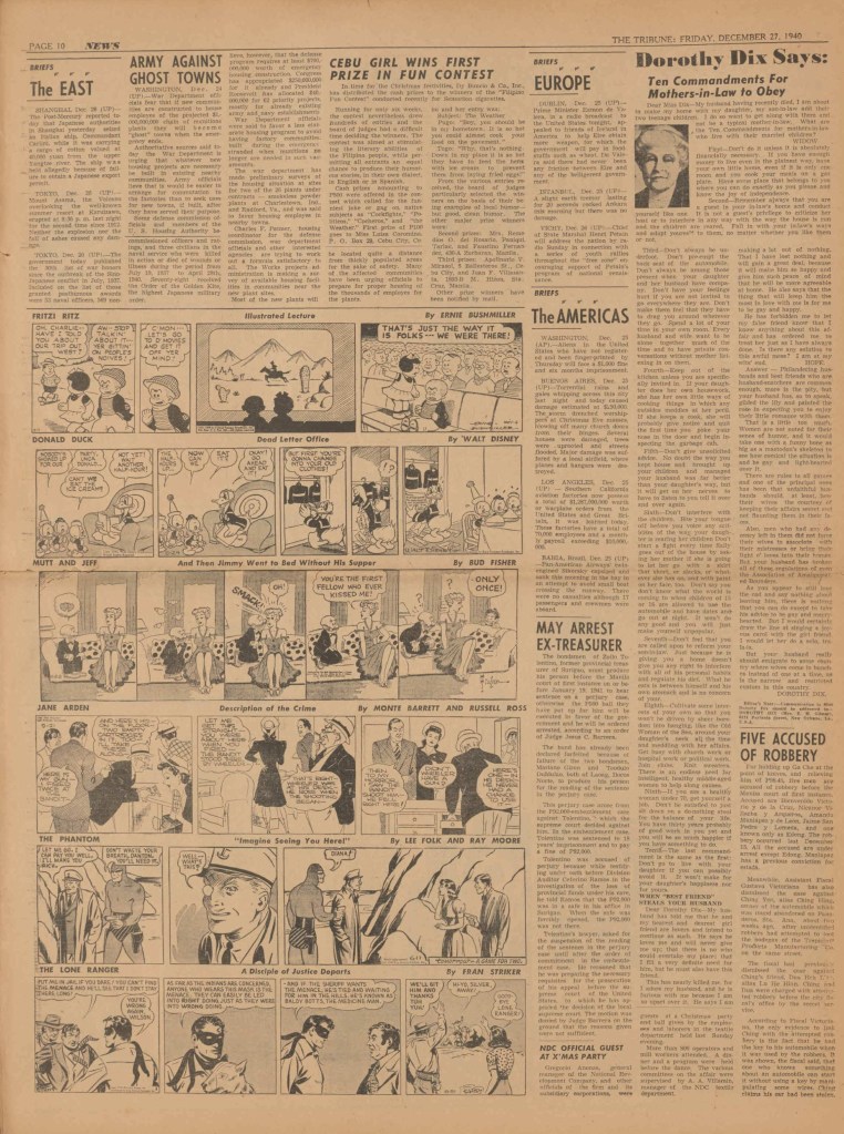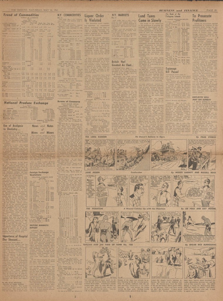 On the weekend, a special comic lift-out was published in full color, running for 16 pages and containing comic characters such as Tarzan, The Lone Ranger, The Captain and The Kids, Henry, Prince Valiant and more. See below an example of the weekend lift-out.