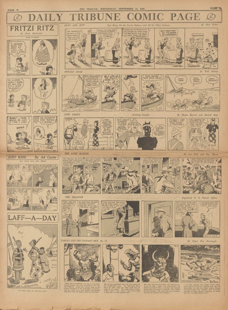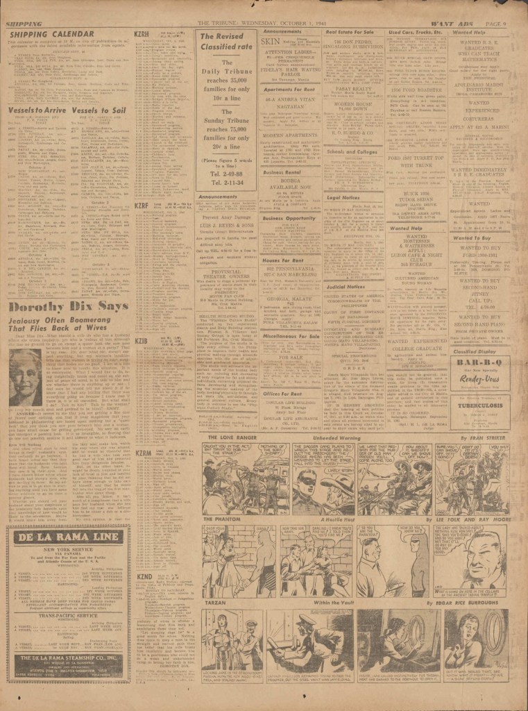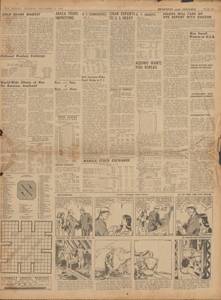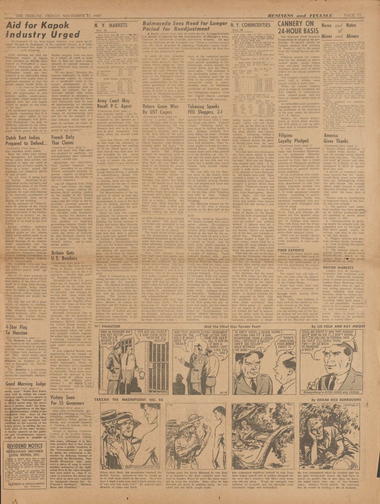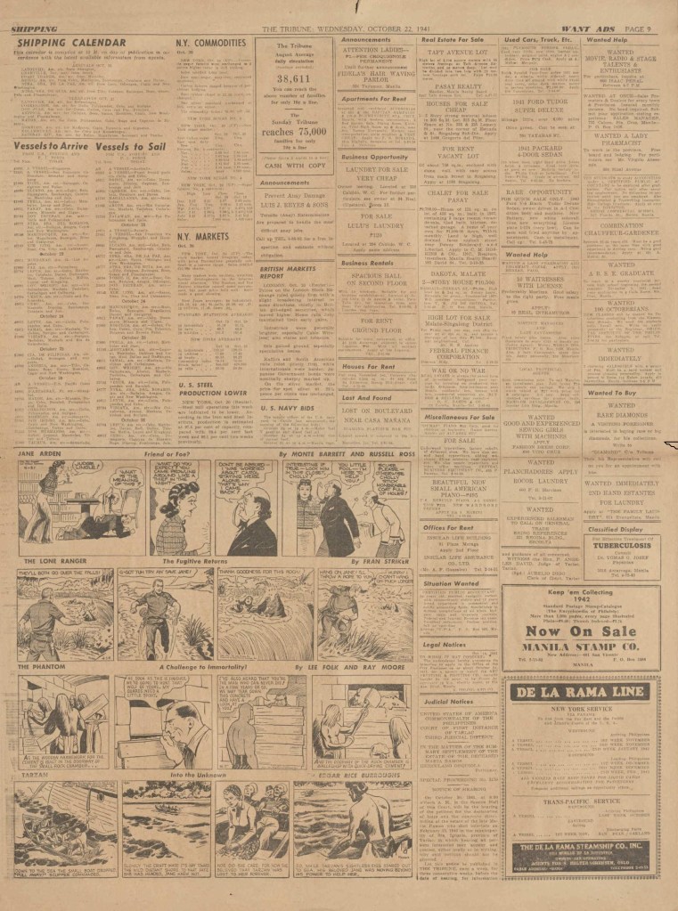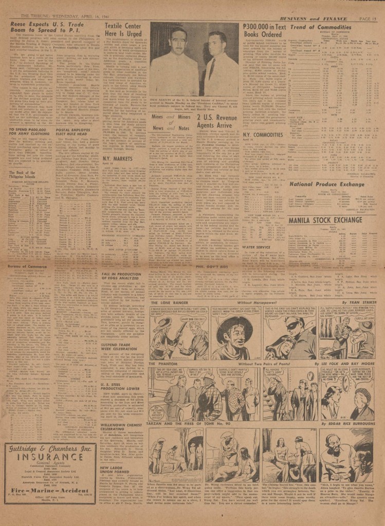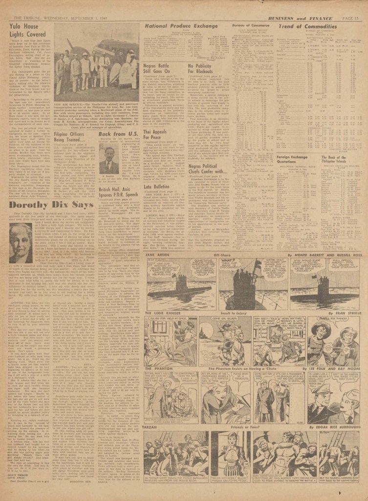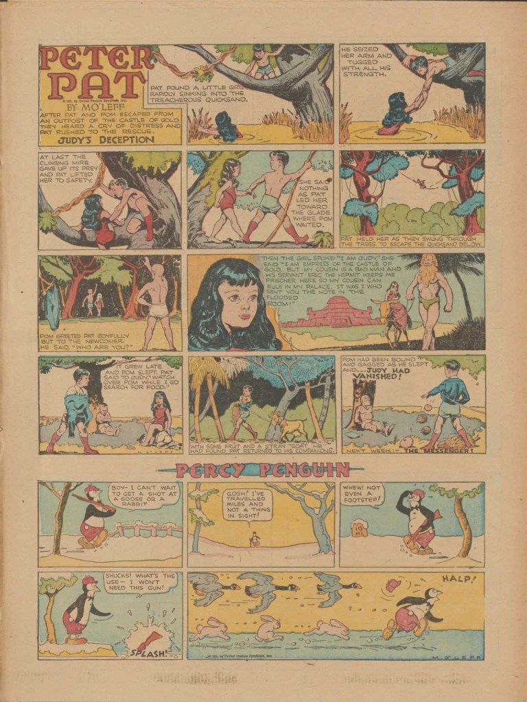 On the weekend, a special comic lift-out was published in full color, running for 16 pages and containing comic characters such as Tarzan, The Lone Ranger, The Captain and The Kids, Henry, Prince Valiant and more. See below an example of the weekend lift-out.