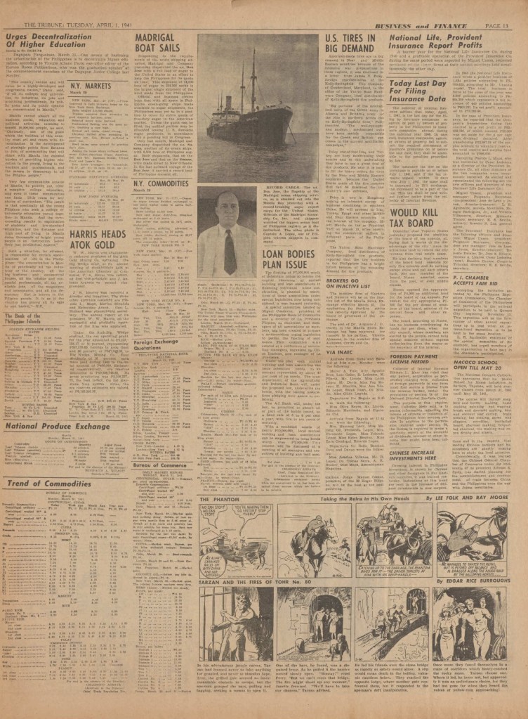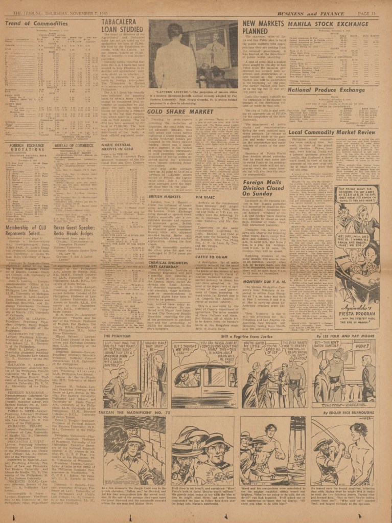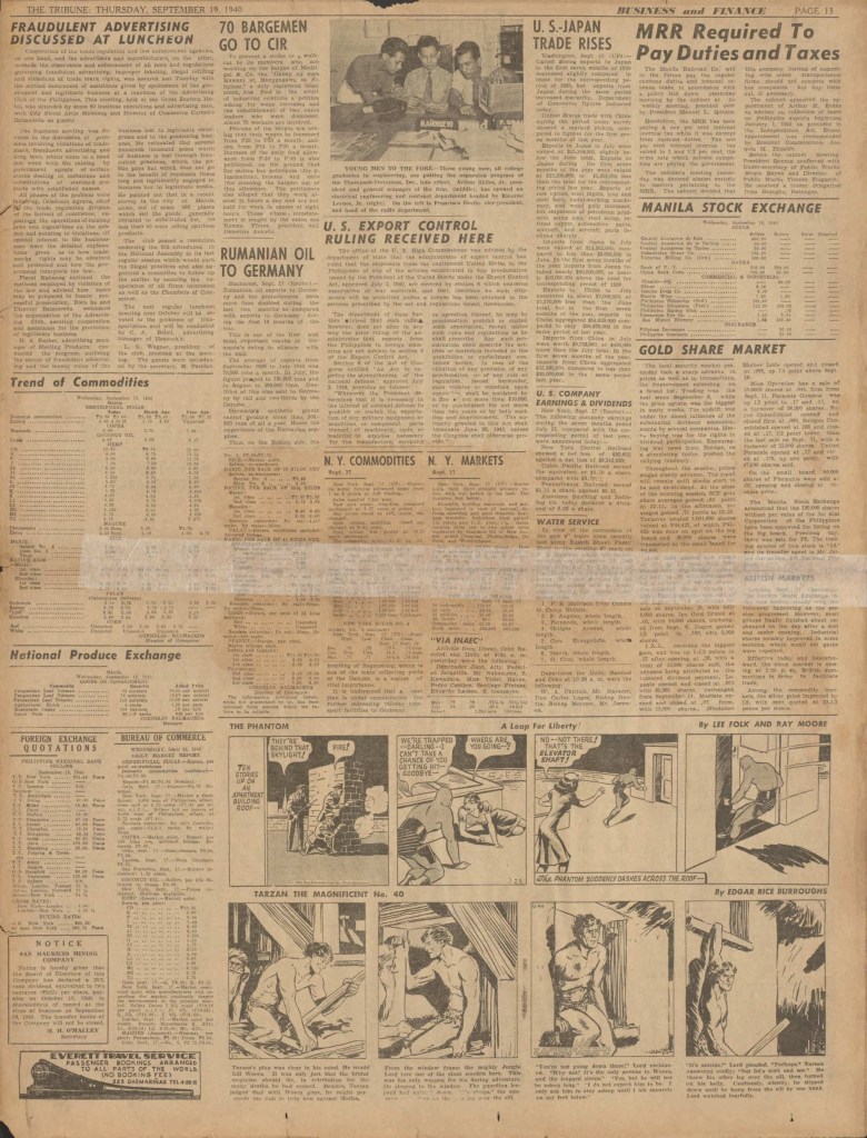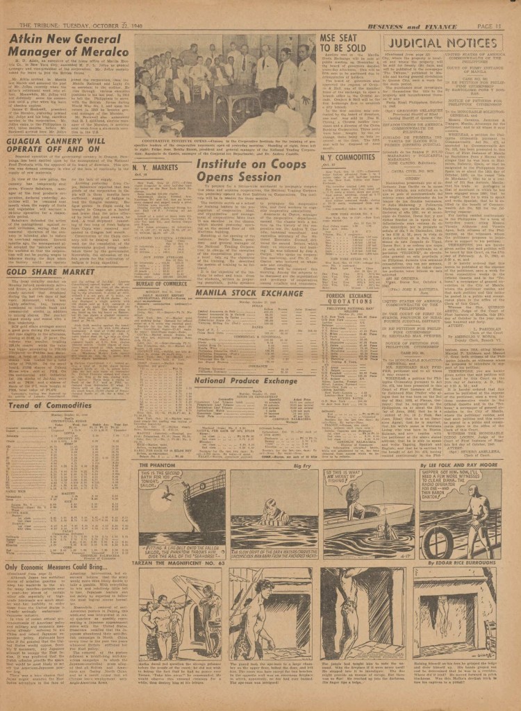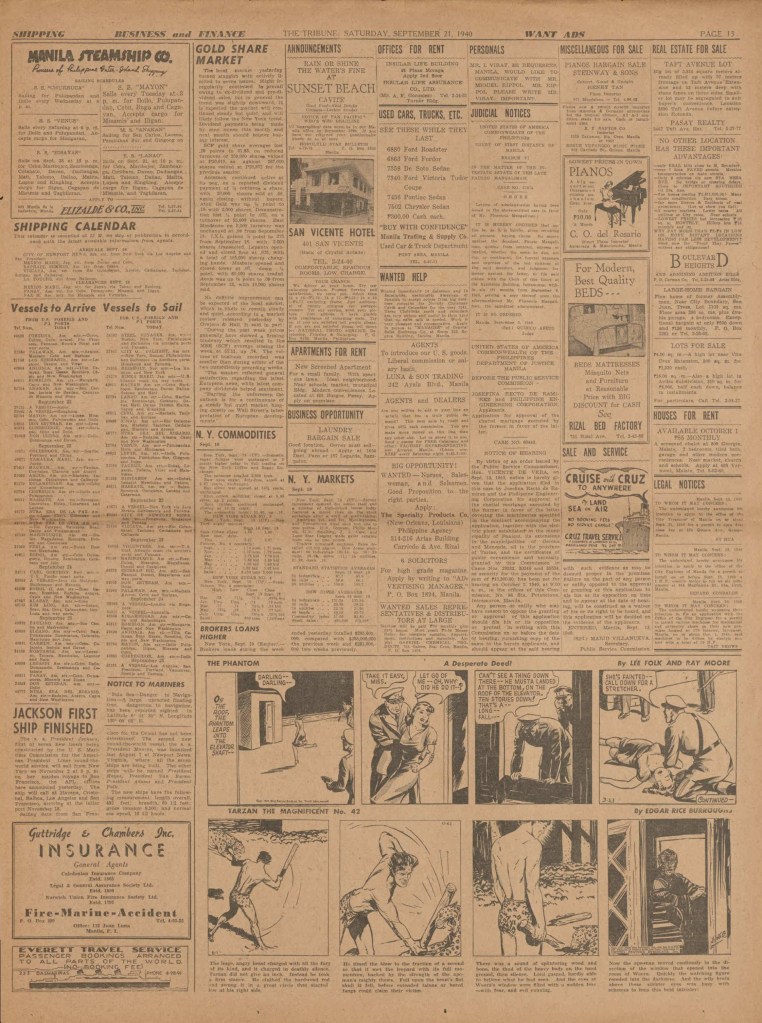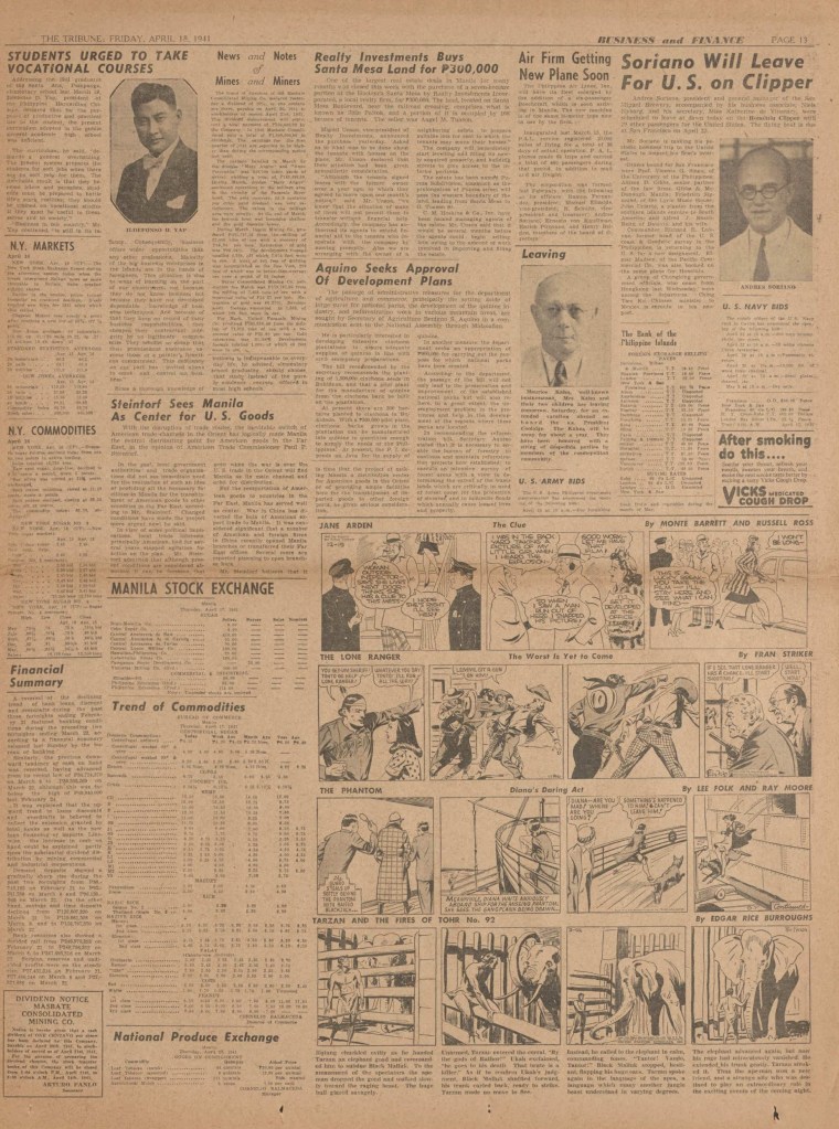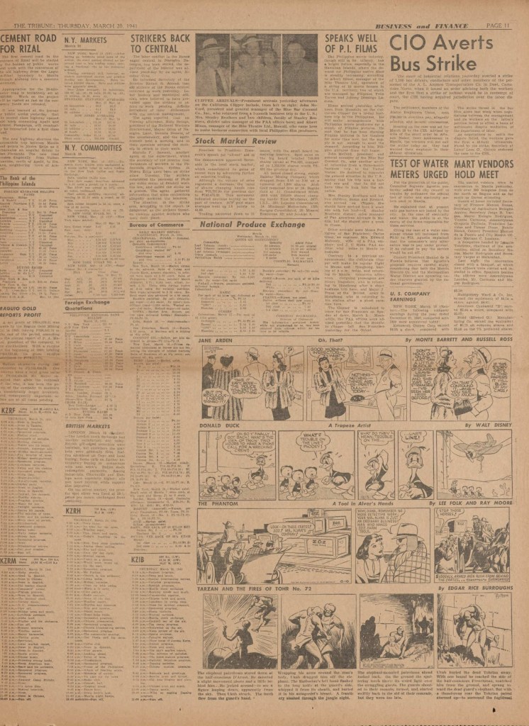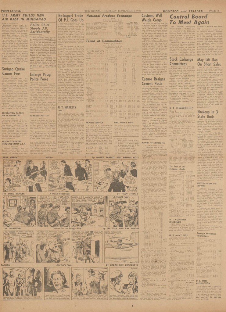 On the weekend, a special comic lift-out was published in full color, running for 16 pages and containing comic characters such as Tarzan, The Lone Ranger, The Captain and The Kids, Henry, Prince Valiant and more. See below an example of the weekend lift-out.