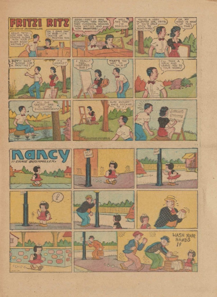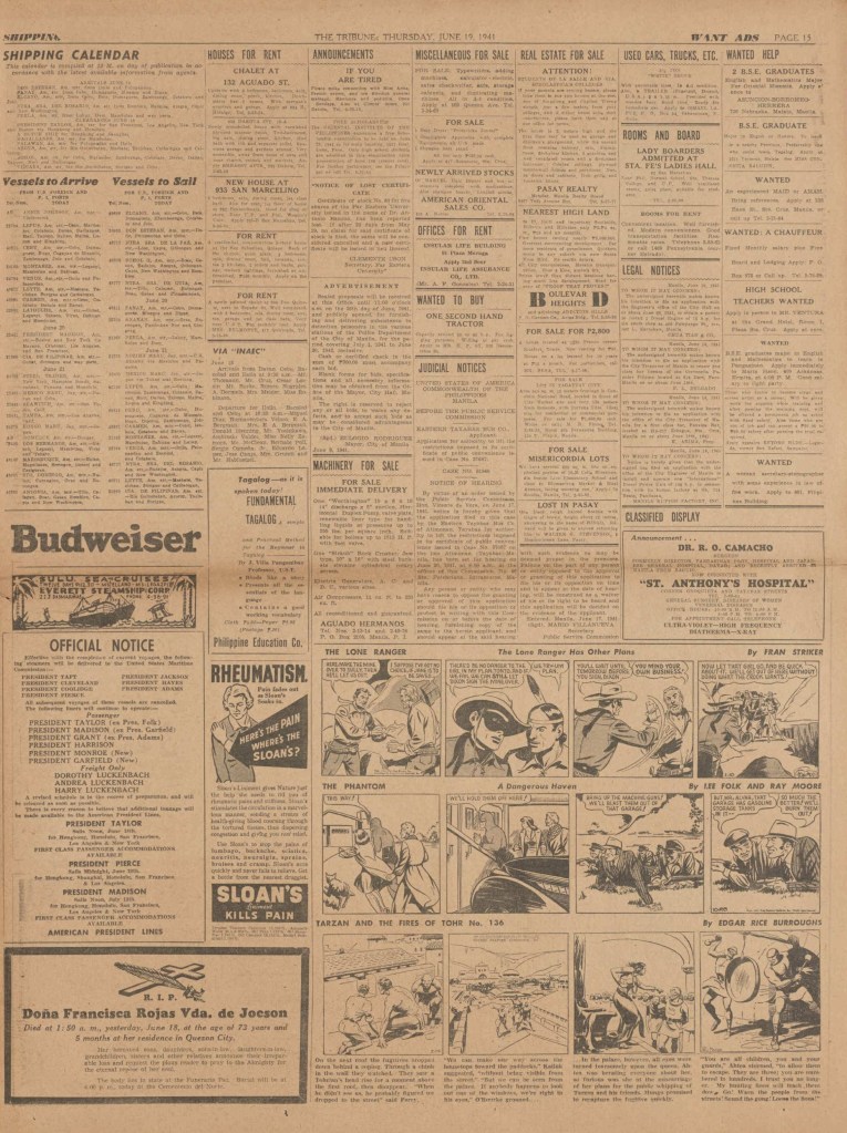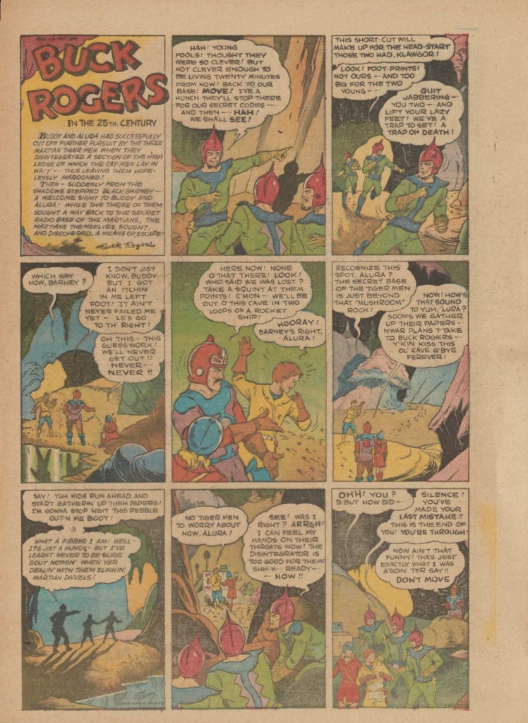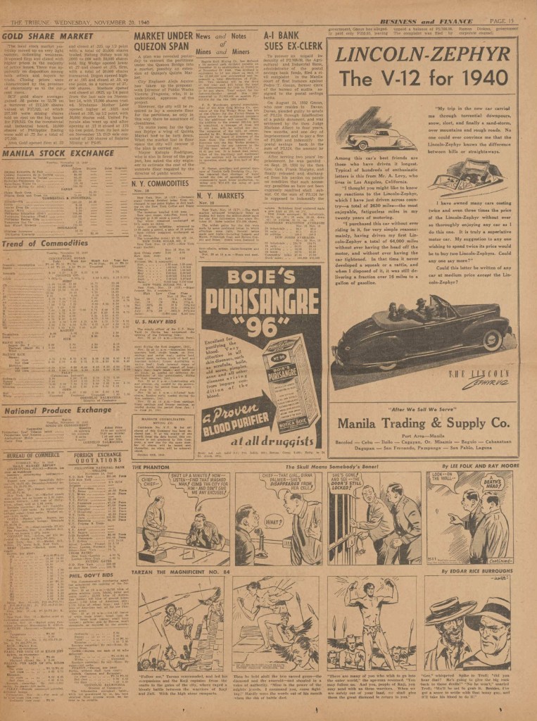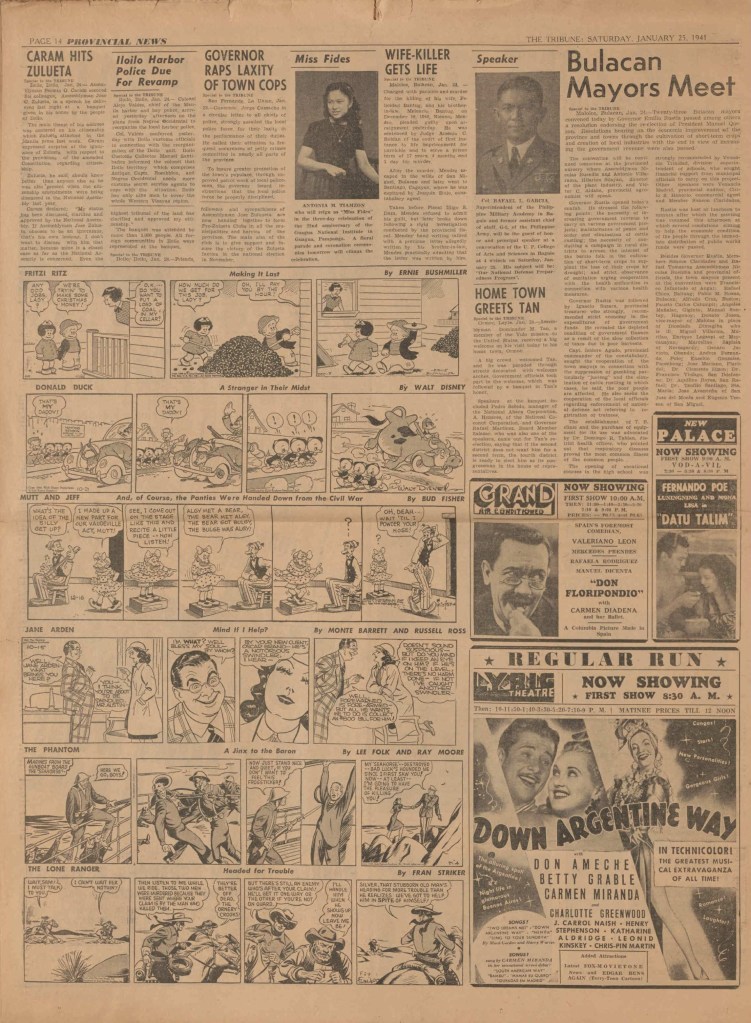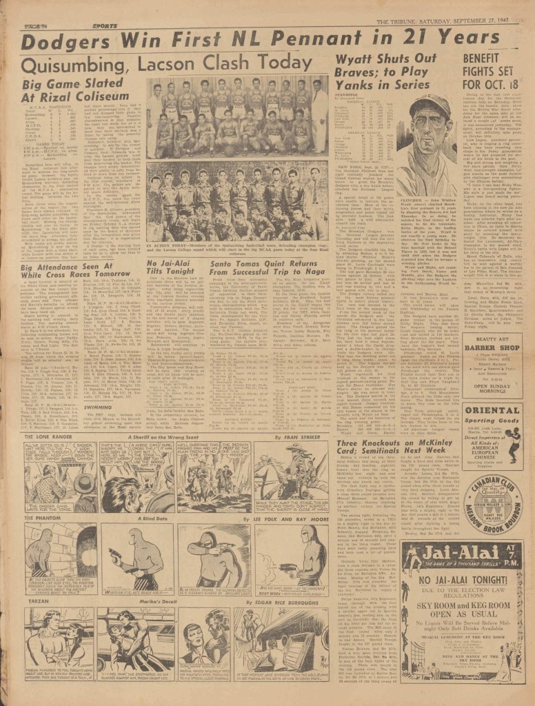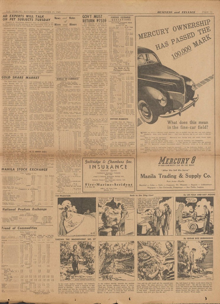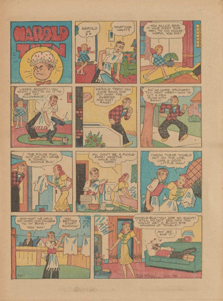 On the weekend, a special comic lift-out was published in full color, running for 16 pages and containing comic characters such as Tarzan, The Lone Ranger, The Captain and The Kids, Henry, Prince Valiant and more. See below an example of the weekend lift-out.