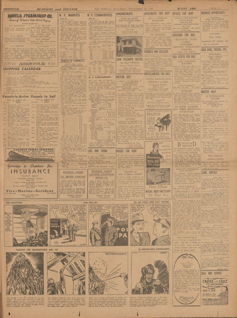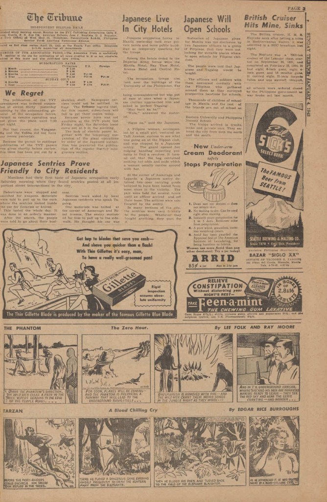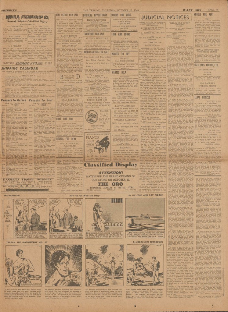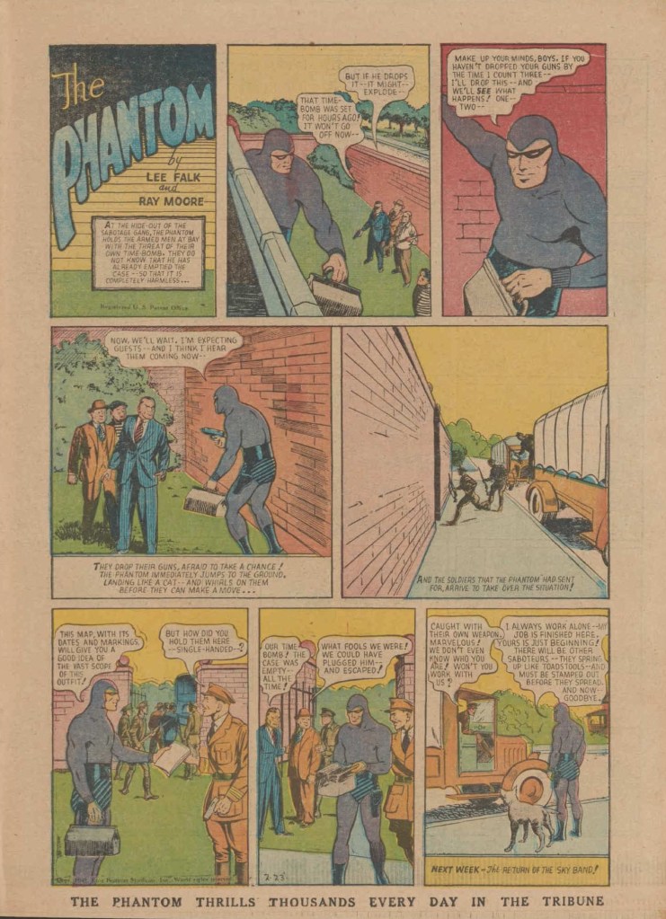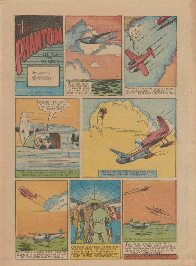 See following examples of pages that were printed containing the Phantom Sunday comic strips.