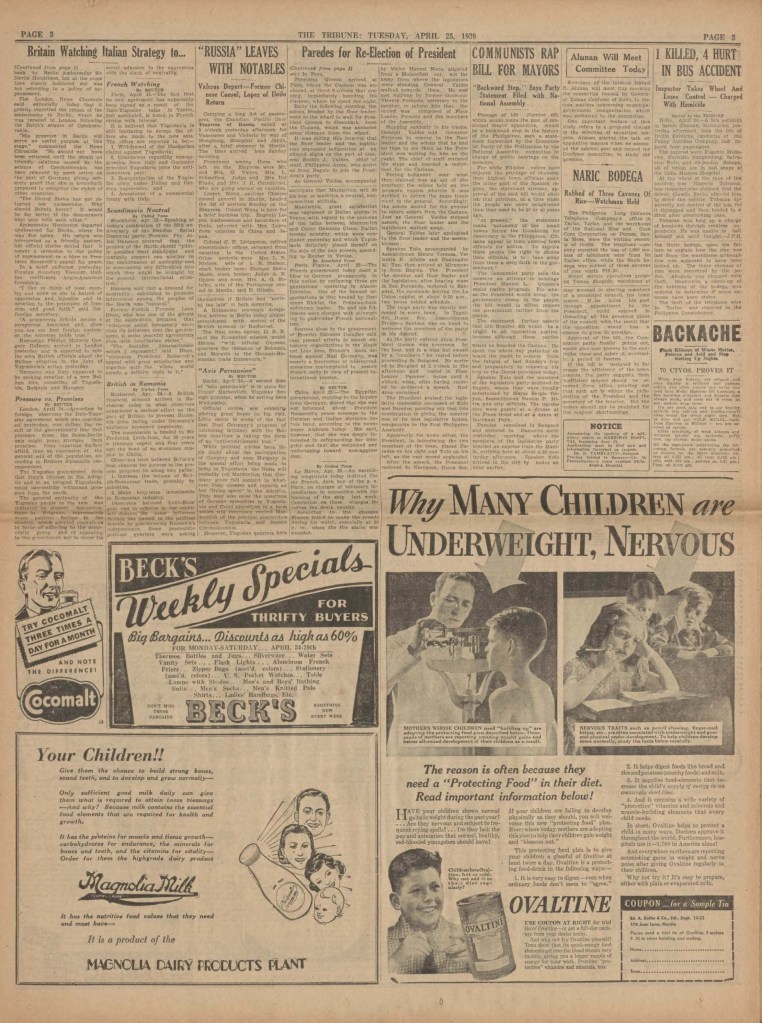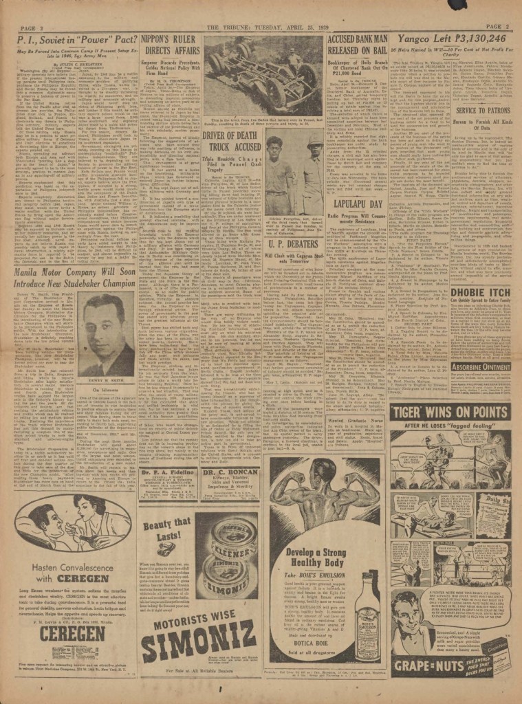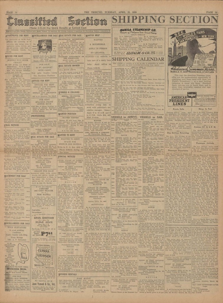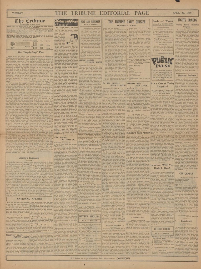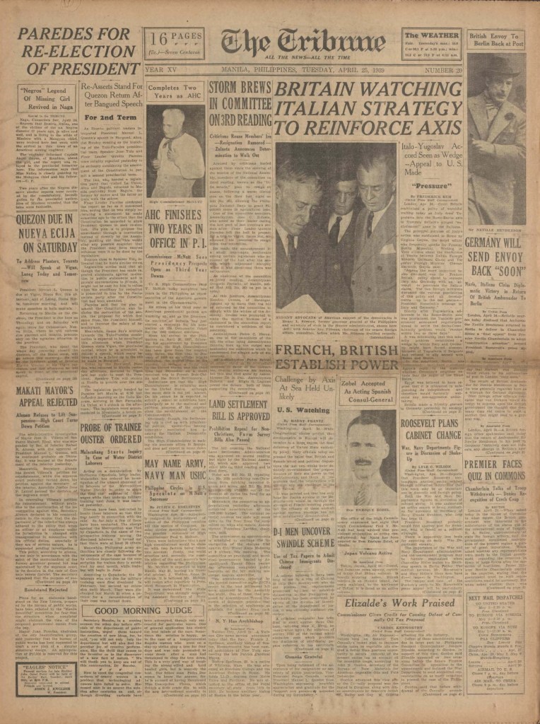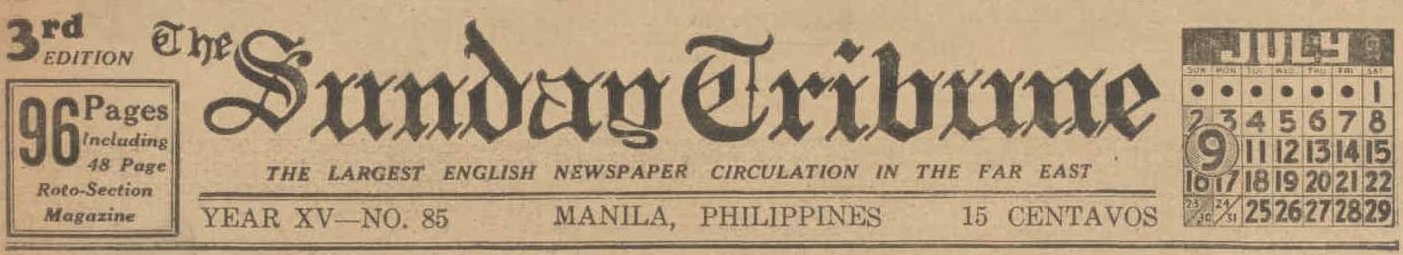 The Tribune is a newspaper that was printed in Manila, in the Philippines, remaining in print for approximately 20 years (1st of April 1925, until the 3rd of February 1945).